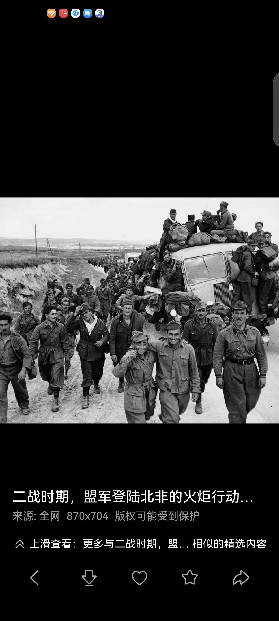 11月8日 盟军北非登陆(火炬行动) 1942年11月8日,艾森豪威尔指挥盟军在阿尔及利亚(奥兰、阿尔及尔) 与摩洛哥(卡萨布兰卡)之间海岸登陆,夺取北非沿岸关键港口和机场 随后他们向东进军,与西进的英军第8集团军合围盘踞在突尼斯的德意军队 盟军首先遭遇的对手是维希法军 当地的法国守军效忠于与德国合作的法国维希政府,盟军的进攻在理论上是在对一个名义上的“中立国”发动攻击 经过三天的混乱战斗和紧张谈判后,11月10日,维希法军达尔朗海军与盟军达成北非的法军全面停火协议 此事引起德国报复,希特勒下令德军迅速占领了法国全境(“安东行动”),维希法国残存的自治权彻底丧失 战争转折点的一部分:“火炬行动”与同时期发生的斯大林格勒战役和瓜达尔卡纳尔岛战役共同构成了1942年底第二次世界大战的全局性战略转折点 盟军立即向东推进,进入突尼斯,直指德军隆美尔的“非洲军团”