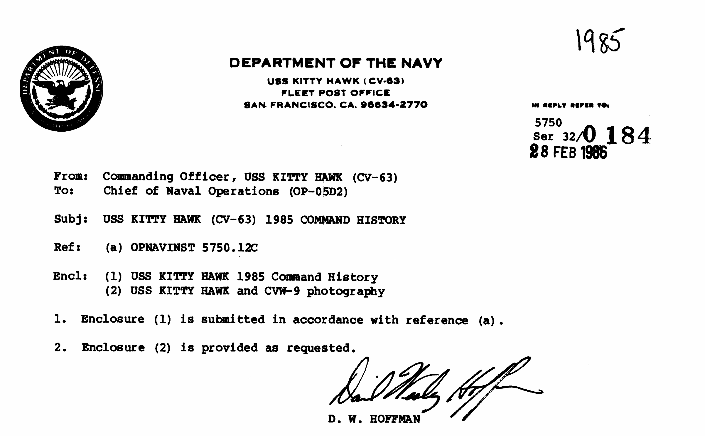 《USS KITTY HAWK (CV-63) COMMAND HISTORY 1985》