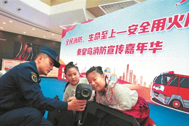 11月9日,市消防救援支队在海港区万达广场举办以“全民消防生命至上——安全用火用电”为主题的消防宣传嘉年华活动。“秦皇岛消防”抖音号全程直播,线下线上2.2万余人沉浸式学习消防知识。活动中,市应急管理局、市城市管理综合行政执法局等多部门工作人员到场,共同普及消防安全知识。图为小朋友近距离体验消防装备。