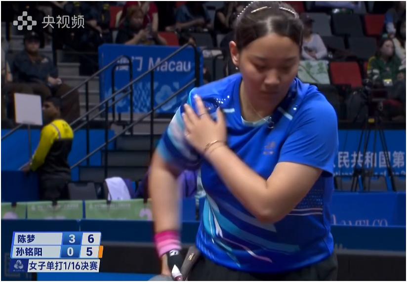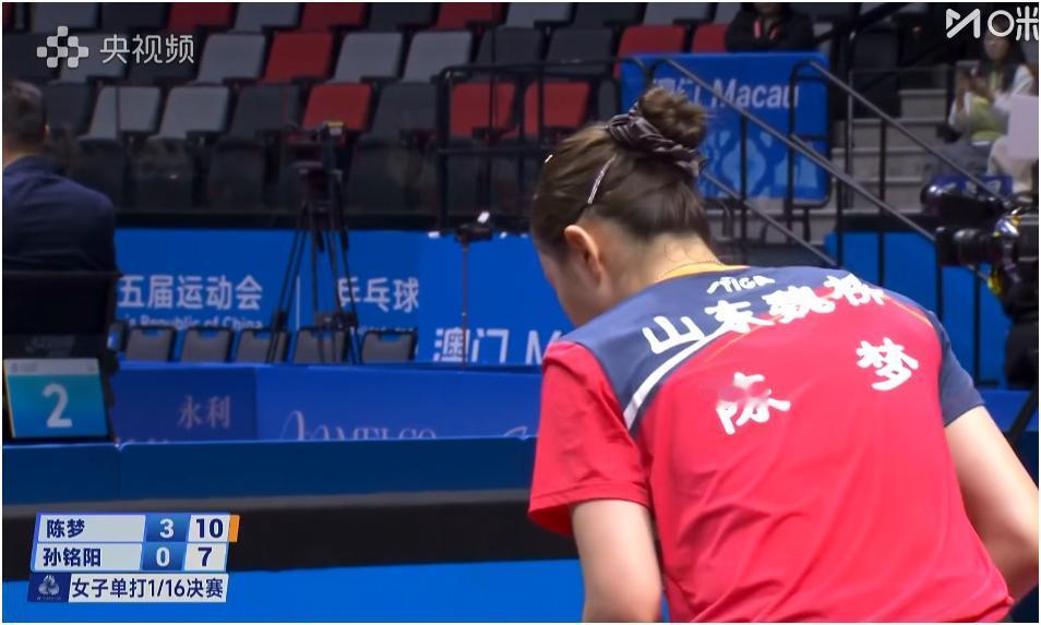全运会女单第一轮,山东队陈梦状态回归,20多分钟4比0击败上海队孙铭阳。 陈梦虽然一年多没打比赛了,以为会打得很困难,毕竟孙铭阳也是挺强的。 但陈梦往场上一站,奥运会冠军的气势就出来了,精神状态看着也很好,很拼很有冲击力。 孙铭阳在场上一度很难受,多次被打出痛苦表情。在第四局领先被追分后选择暂停,但回来后,还是没有办法遏制住陈梦的进攻,很快落败。 这场比赛是全运会乒乓球单打比赛截止目前用时最少的一场比赛。