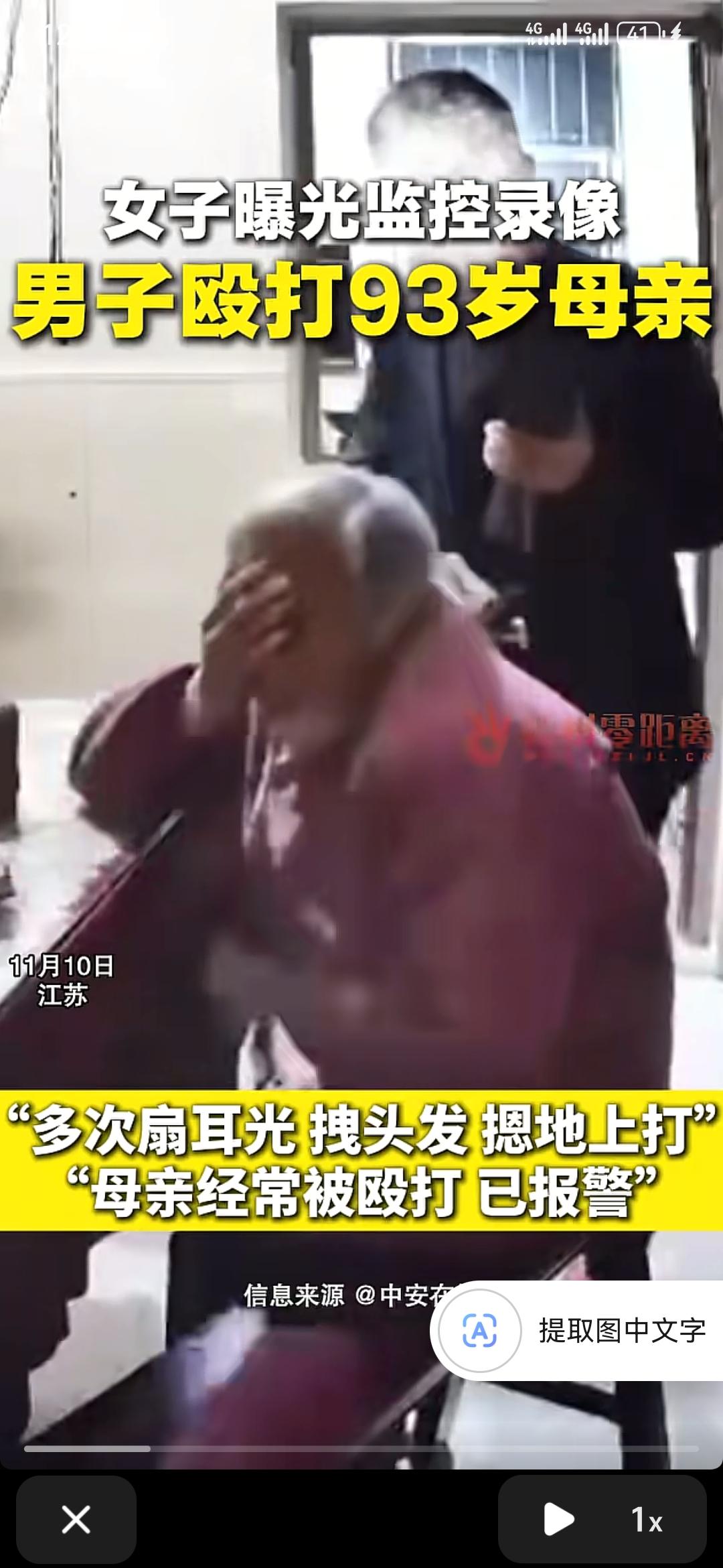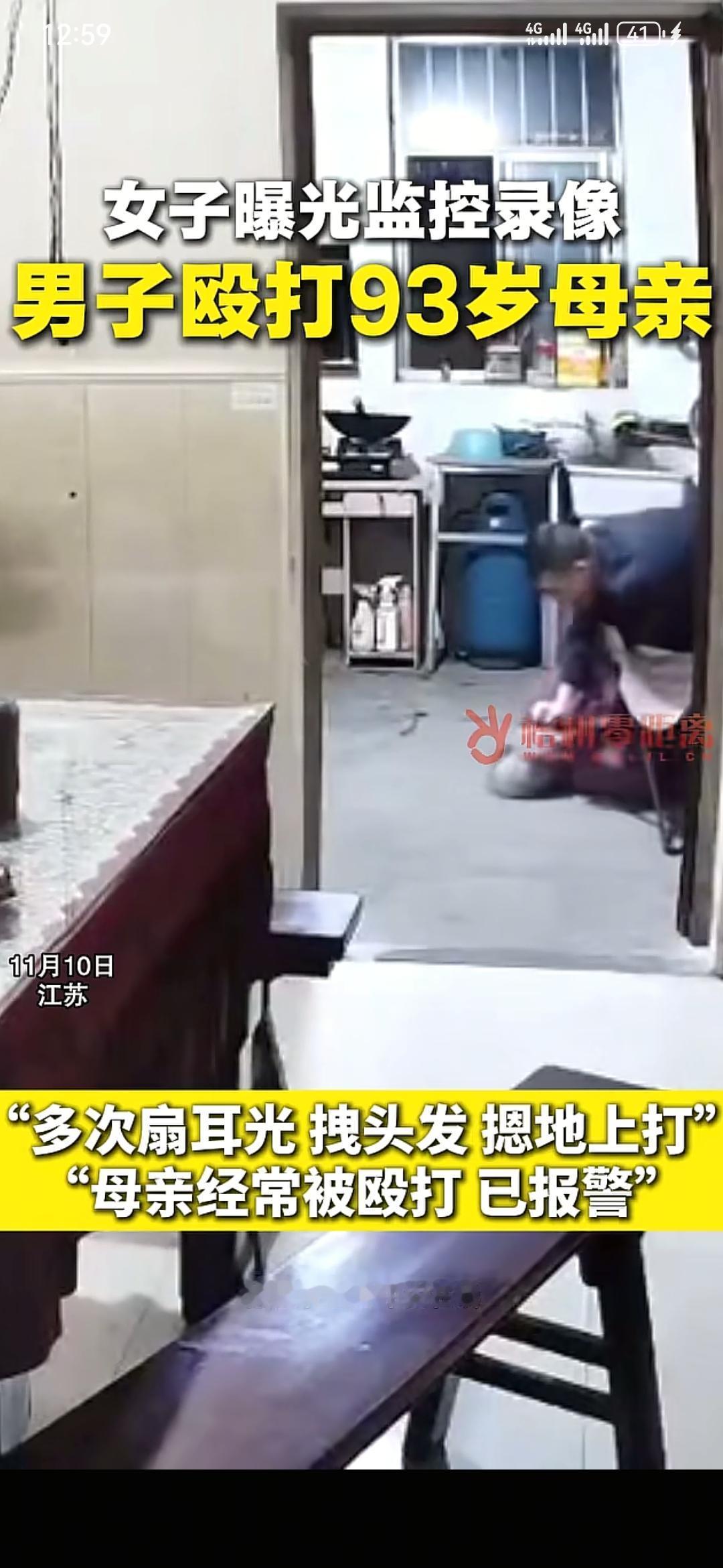 “世上只有妈妈好”,无论是出于什么原因都不应该打自己的母亲!江苏一女子曝光监控录像,男子殴打93岁的老母亲 我在屏幕外面都给我看的心疼,心跳加快,有钟手伸不进屏幕的感情,看的我是直冒火 多次扯拽母亲头发,扇耳光,还按在地上打。都说养儿防老,这样的儿也没必要养。大家说是不是?
