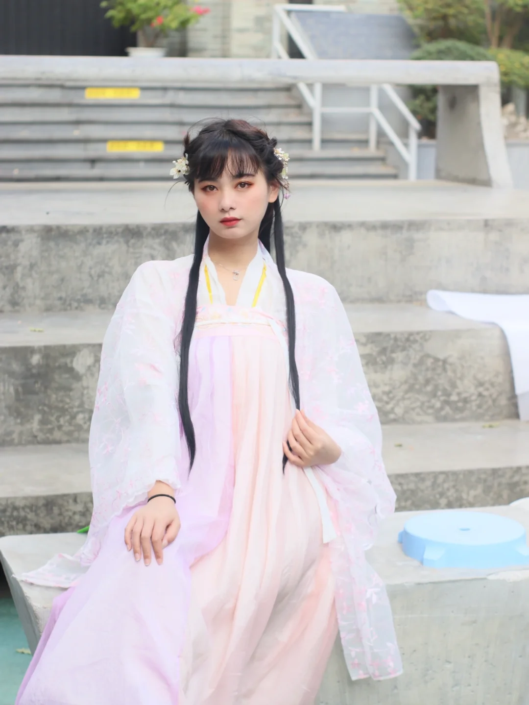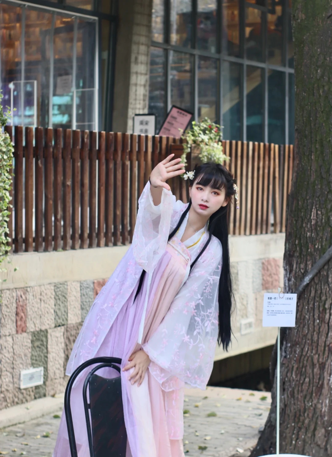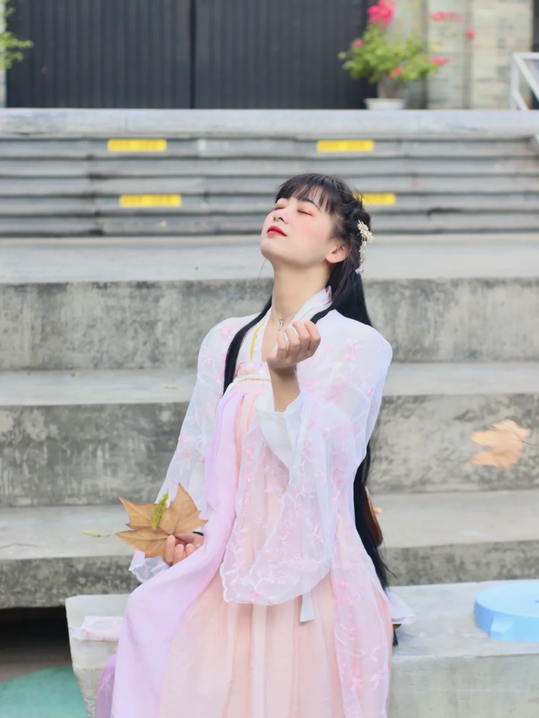 今天和小姐妹出去玩穿了新买的汉服 粉色好好康 我永远爱汉服呜呜呜