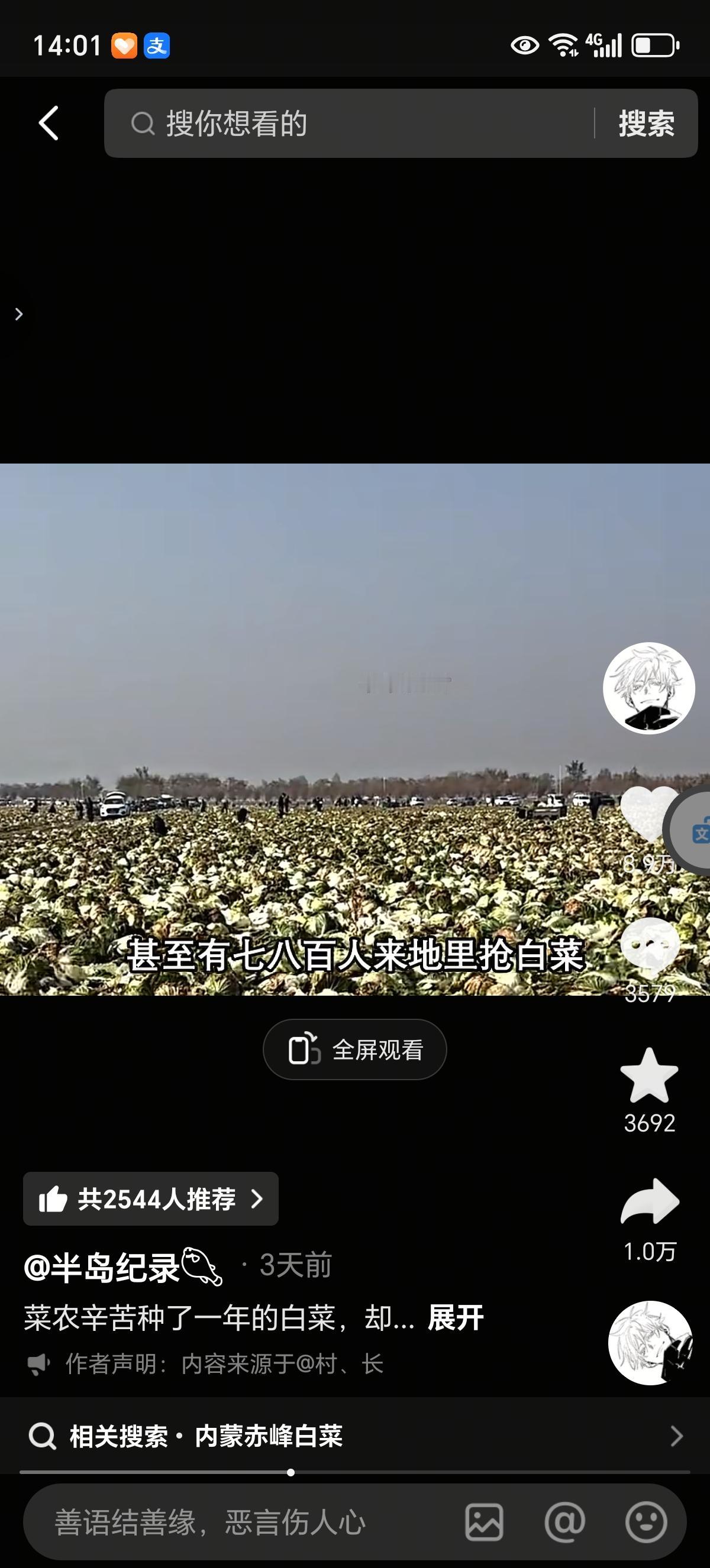 内蒙古赤峰“白菜免费”假消息引发的哄抢事件真是让人气愤啊,菜农当时在场的,努力阻拦抢菜的都没有拦住,这极端占便宜行为真是让人不解啊,看见消息跑到有人的菜地都不问问的吗? 农村的每一亩菜地的主人都不一定是同一个啊,都不弄清楚就抢人白菜,让人家200亩菜地血本无归啊,那可是近100万损失啊,不是几块钱菜钱的事了。 有些参与的民众可能真的是不知道实情,也没遇到阻拦的菜农,事后知道真相立马联系菜农道歉,主动赔偿菜钱。可惜这部分人不多,挽不回菜农的巨大损失。菜农可能也知道他们是盲目跟从的人,道歉态度良好,就没有收他们的钱。 目前李先生已聘请律师,正收集视频、证人证言等证据,准备通过法律途径追究相关责任方的赔偿责任。