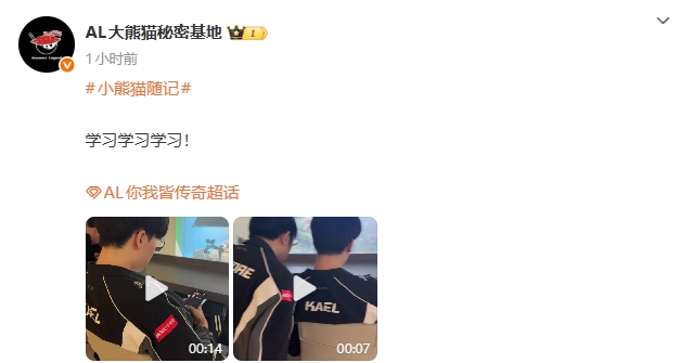 在昨日Kael的经济公司发布了和Kael在中国的合照后(此前经济公司发布选手合照就表示已经签订了明年的合同)今日AL官方账号发布了Kael在学习中文的视频,并且圣枪哥也在一边指导。