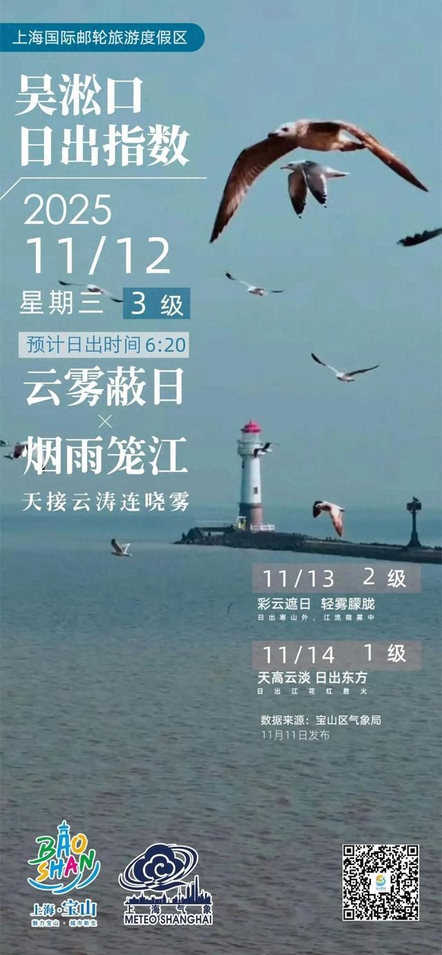 [吴淞口日出指数]11月12日3级云雾蔽日×烟雨笼江