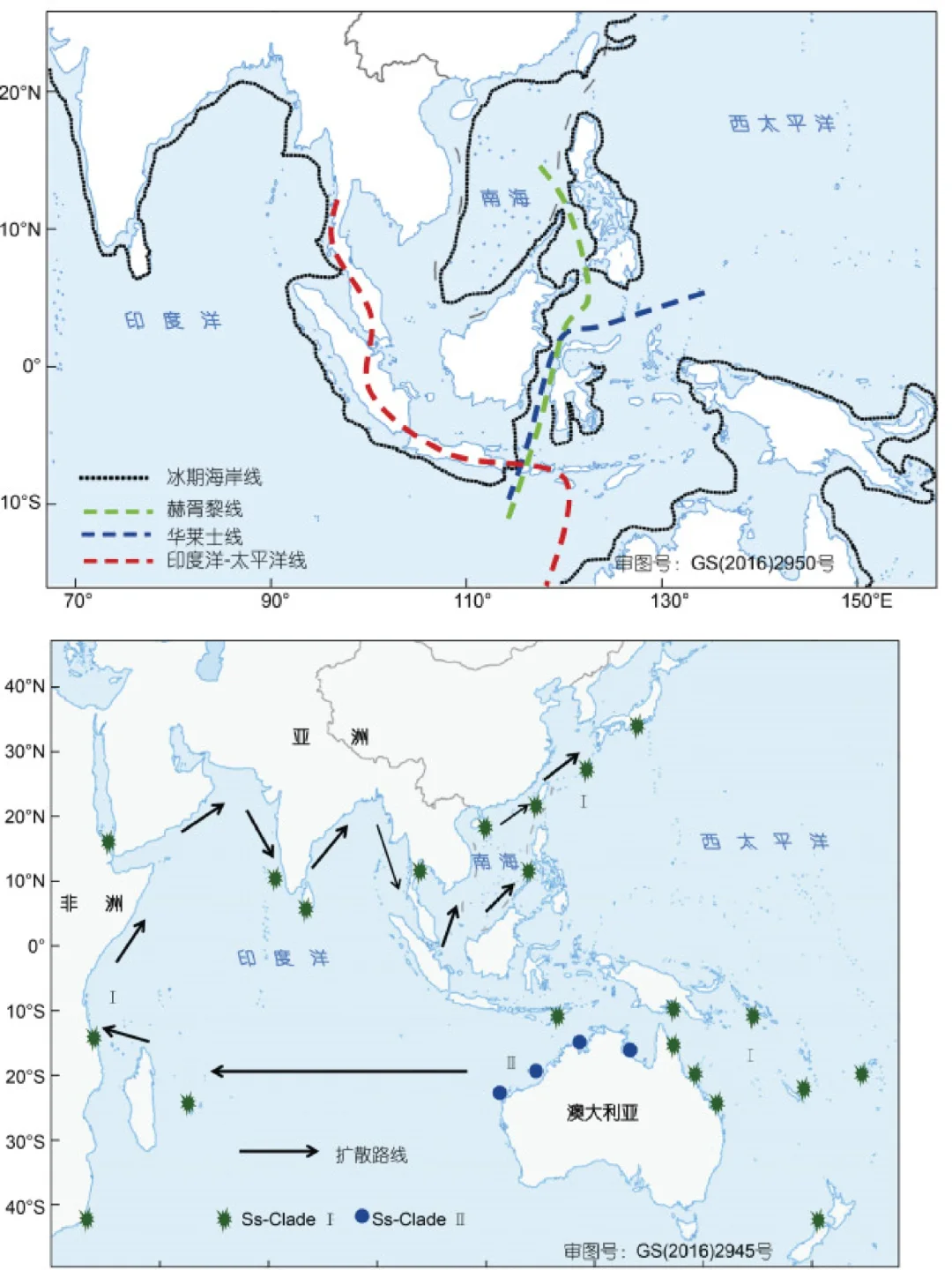 2⃣️冰河时期的影响:在冰河时期,海平面下降,巽他大陆架和萨胡尔大陆架分别会露出水面,形成“巽他古陆”和“萨胡尔古陆”。但是,这两个古陆之间的深水海峡始终存在,像一道无法逾越的护城河,阻止了亚洲和澳洲的陆地动物相互迁徙。