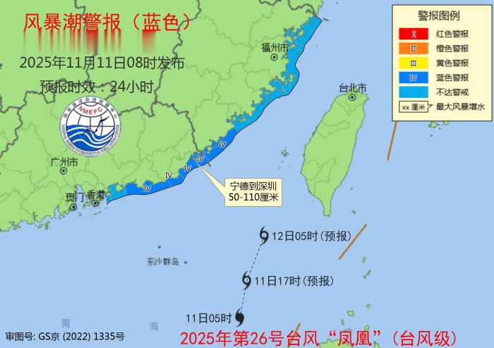 记者从自然资源部获悉,受今年第26号台风“凤凰”和冷空气共同影响,预计今天(11日)上午到12日上午,南海北部、中部将出现7到10米的狂浪到狂涛区,福建宁德到广东汕尾沿海将出现50到110厘米的风暴增水。国家海洋预报台继续发布海浪橙色警报和风暴潮蓝色警报。请在上述海域作业的船只注意安全,沿海各有关单位提前采取防浪避浪措施。