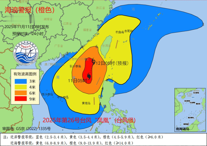 自然资源部发布海浪橙色警报,福建宁德到广东汕尾沿海将出现50到110厘米的风暴增水,南海北部、中部将出现7到10米的狂浪到狂涛区