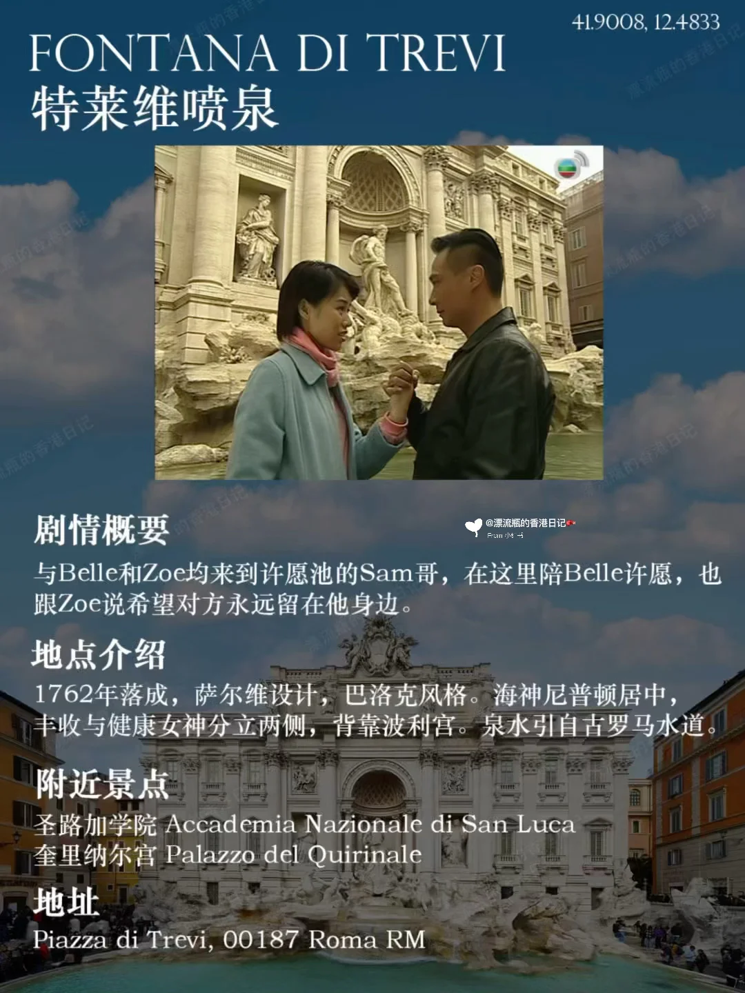 经历了生老病死,Sam哥在Fontana di Trevi许愿池前对Zoe山盟海誓的那一刻,港剧的浪漫💕与罗马的永恒在胶片上交叠,定格成了无数港剧观众心中挥之不去的印记