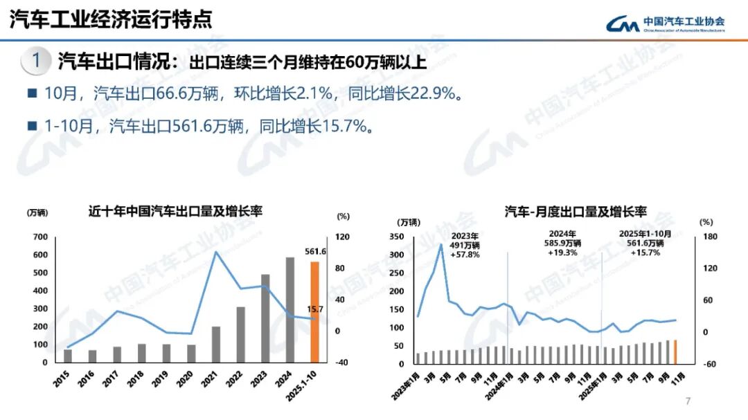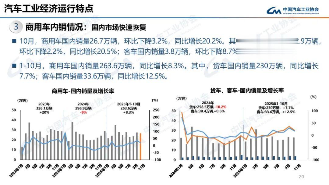 10月,汽车产销分别完成335.9万辆和332.2万辆,环比分别增长2.5%和3%,同比分别增长12.1%和8.8%。1-10月,汽车产销分别完成2769.2万辆和2768.7万辆,同比分别增长13.2%和12.4%,产销量增速较1-9月分别收窄0.1和0.5个百分点。