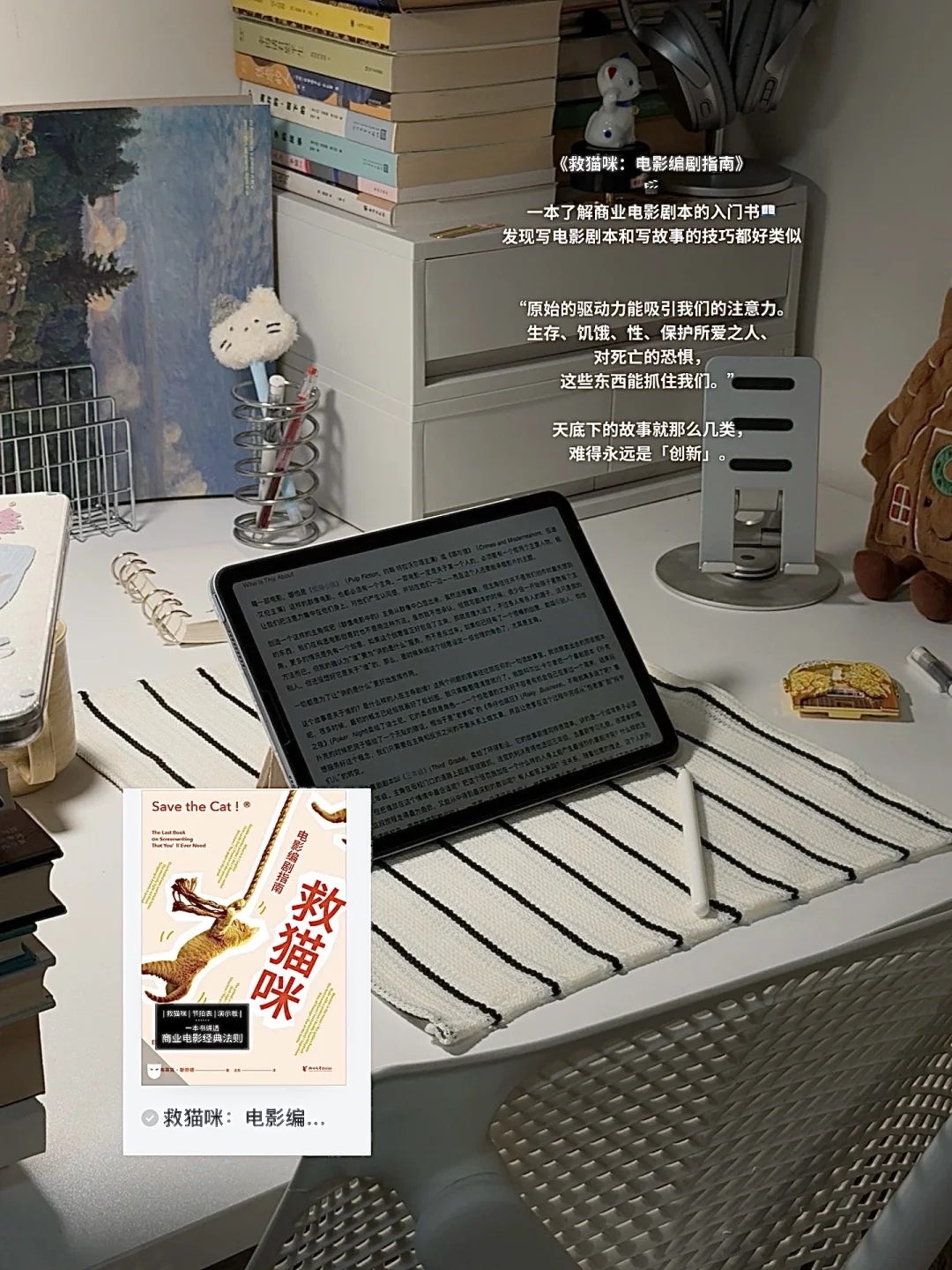 📖: 《救猫咪:电影编剧指南》 《枪炮、病菌与钢铁》 《偷书贼》 - 播客: 1.自我进化论|No.74 持续好状态的秘密:跳出单点思维,建立身心系统 2.S7E10 鲁豫对话王昊鹭|在片场与摇篮间行走,写下自由分镜 - 电影电视剧🎬: 1.黑镜第三季 2.心灵奇旅 - 最近在听🎵: 1.纤维(Angels)-林忆莲 2.ISFJ-樊宇博
