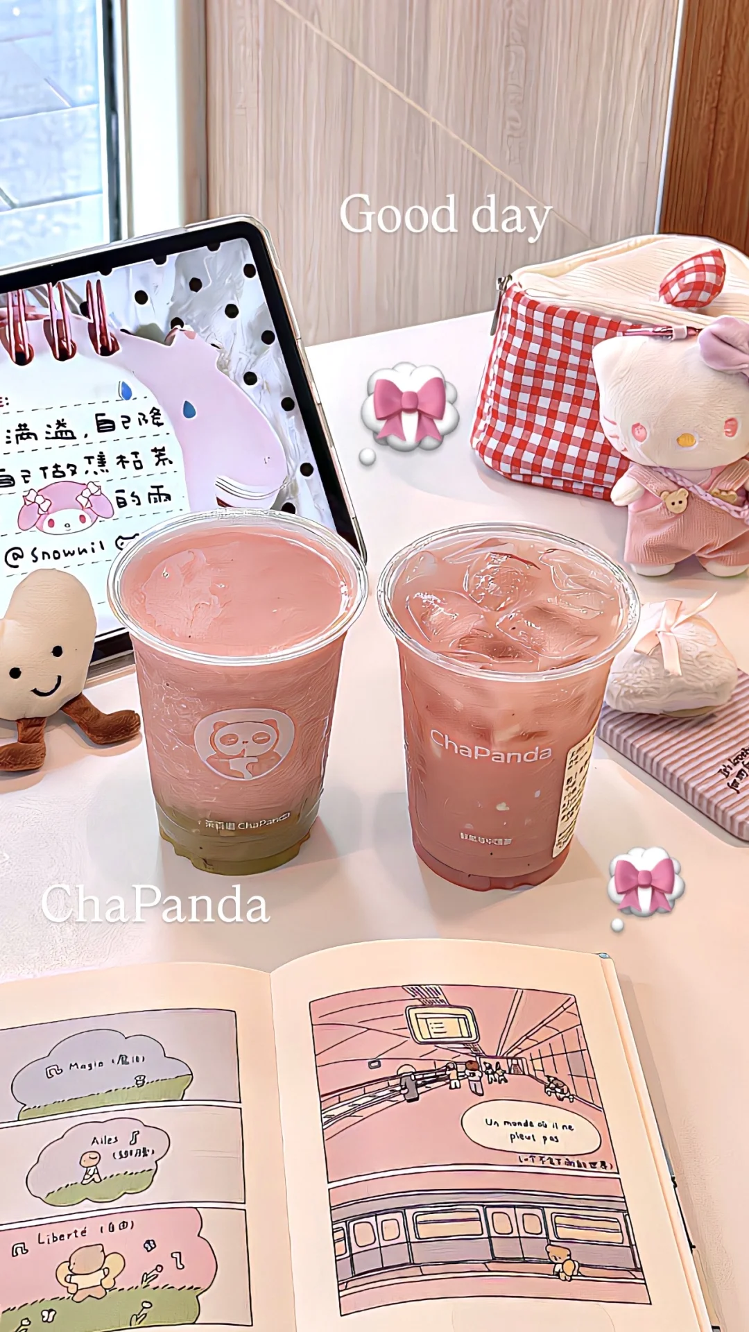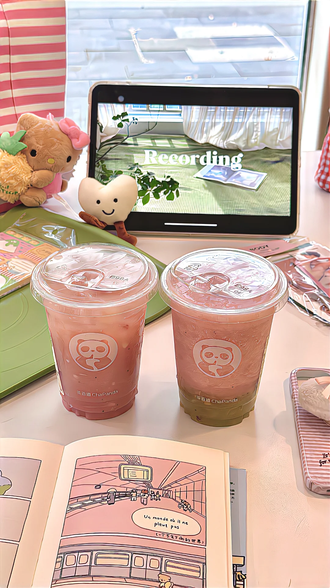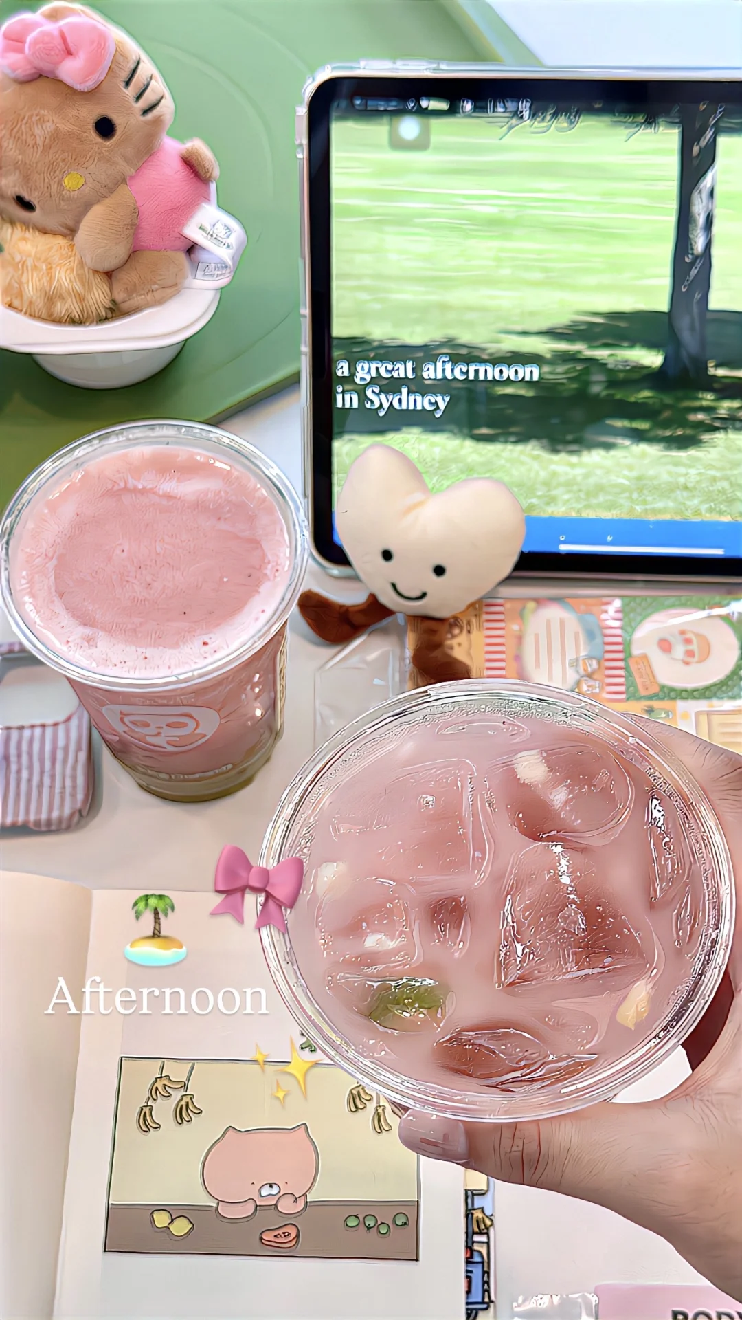 还有一杯是🎀粉上芭乐提🏝️新鲜芭乐➕青提鲜果~是冰沙嘟!口感好丰富捏!!这一杯颜值也没话说!!和朋友下午茶美美来上一杯~好看又好喝!我狂拍一下午hahaha🍹🍹坐在店里和朋友聊天喝🍸谁懂!!又幸福了!!喜欢芭乐的脑婆有福啦~~