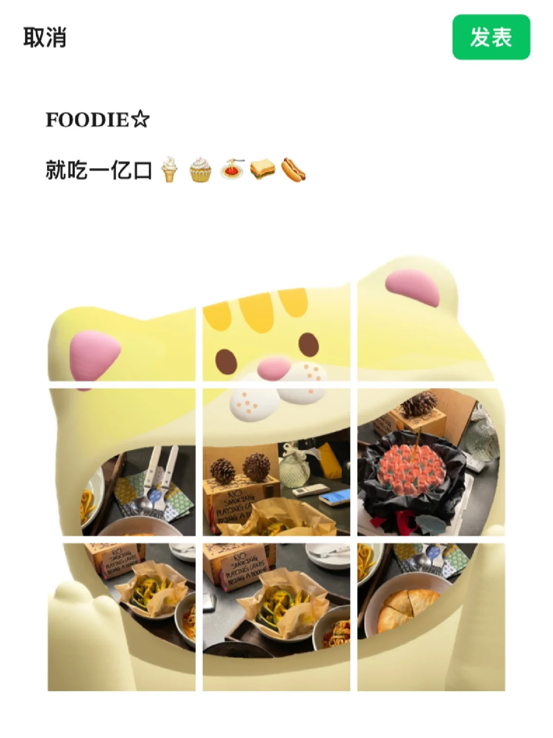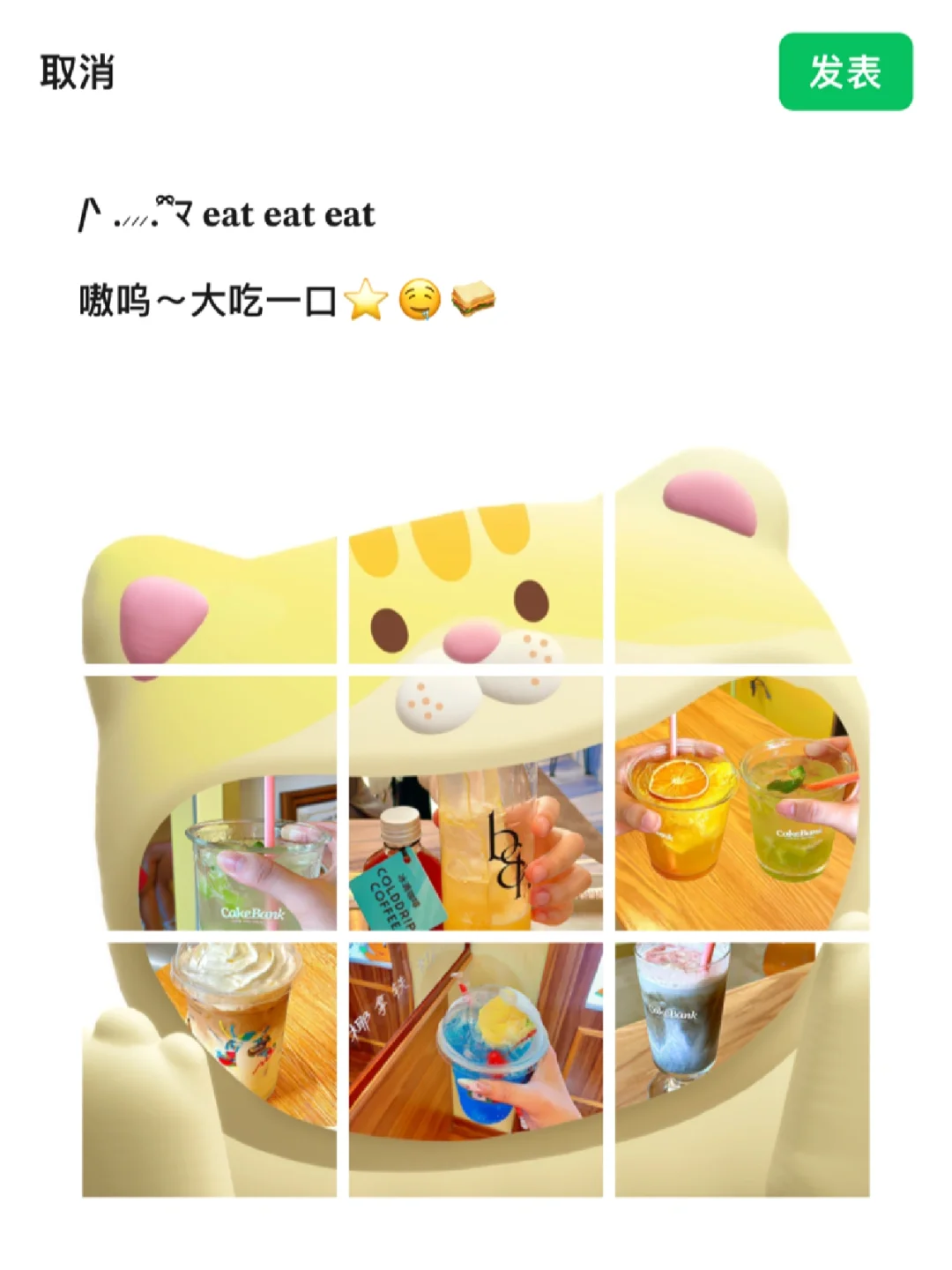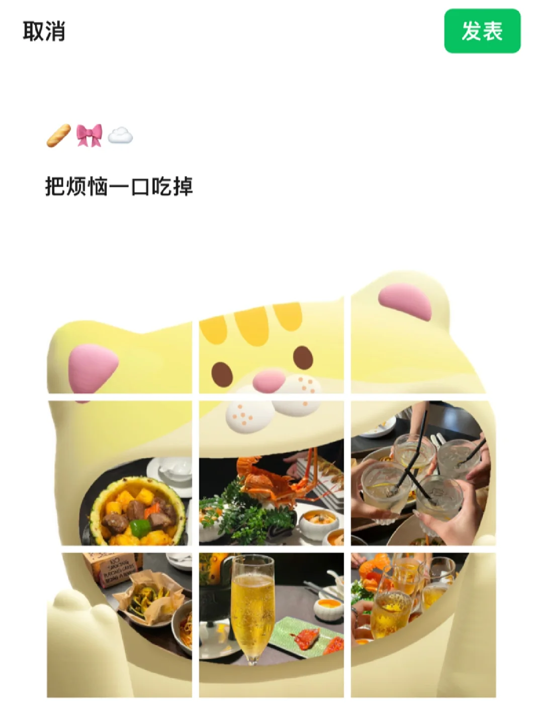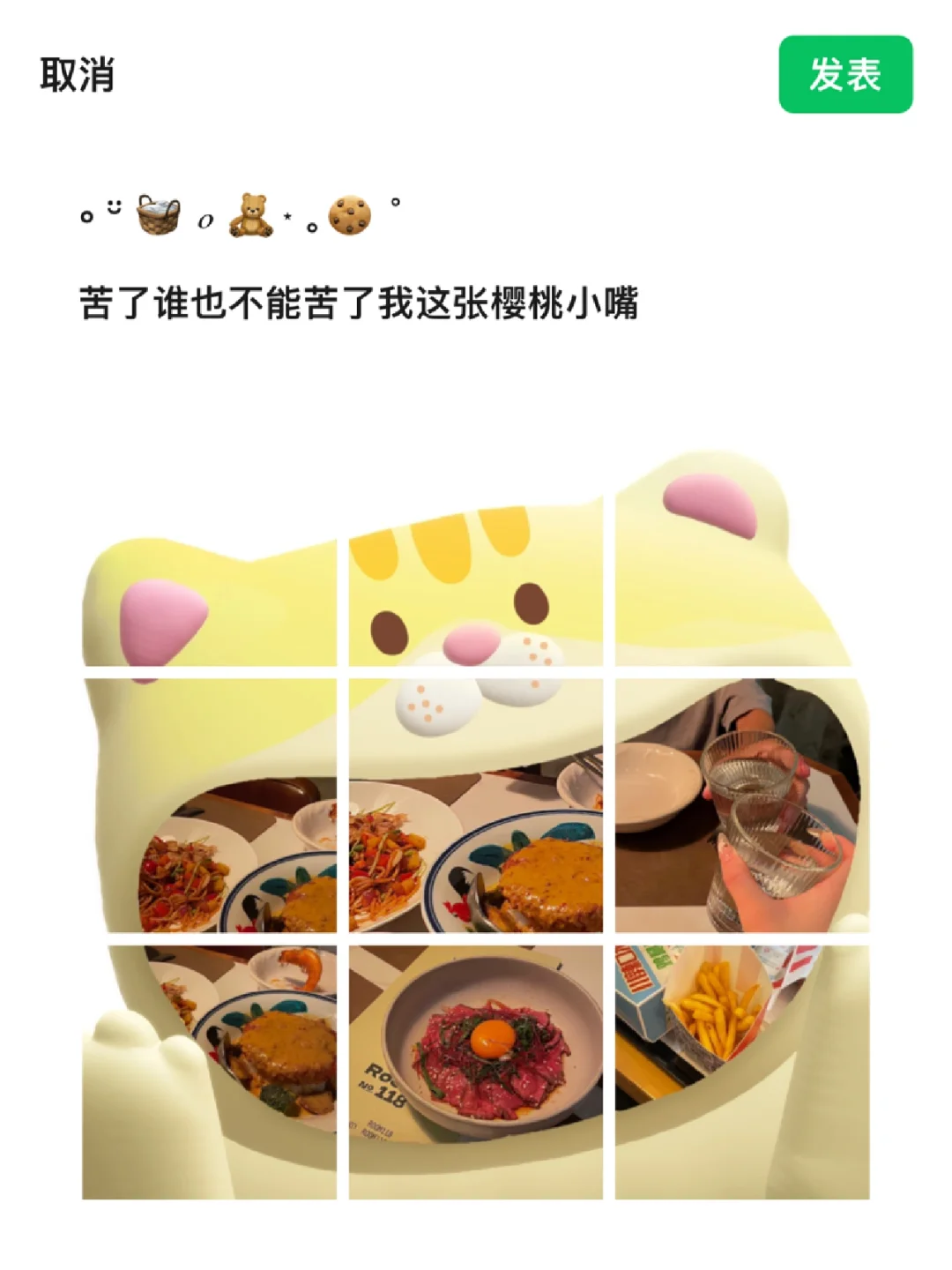 𝐇𝐢~我是小咩 这样发朋友圈也太可爱了吧8⃣️苦了谁也不能苦了我这种樱桃小嘴呀🥪🌭🍔🍕我发4我就吃亿口hahahahaha~ - 可爱的美食文案: /ᐠ .⸝⸝⸝. ྀིマ 𝐞𝐚𝐭 𝐞𝐚𝐭 𝐞𝐚𝐭 嗷呜~大吃一口⭐️🤤🥪 𝐅𝐎𝐎𝐃𝐈𝐄☆ 就吃亿口🍦🧁🍝🥪🌭 🧺 ℴ 🧸⋆ 。🍪 ˚ 苦了谁也不能苦了我这张樱桃小嘴 🥖🎀☁️ 把烦恼一口吃掉 . 🍓🐰咻咻-首页-点击朋友圈九图!超多模板可可爱爱!不知道发什么pyq可以试试!这种奇奇怪怪的排版⭐️📷👌🏻直接赞爆朋友圈!我真的太爱了! .