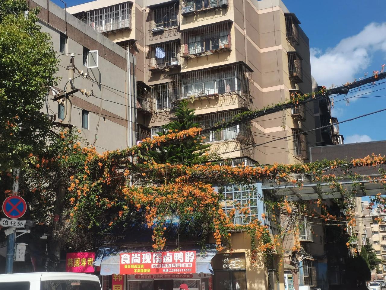 昆明的小小区门口见到的这个是什么花,好漂亮呀!生命力也太玩强了吧!树根四周都是水泥瓷砖的。 今天的昆明又这一个大晴天,蓝天白云下所有的一切都是那么的美好!大家喜欢现在的昆明吗?感觉夏天的昆明优势更多。 有谁知道图片中是什么花啊!以上仅供参考,属个人意见!