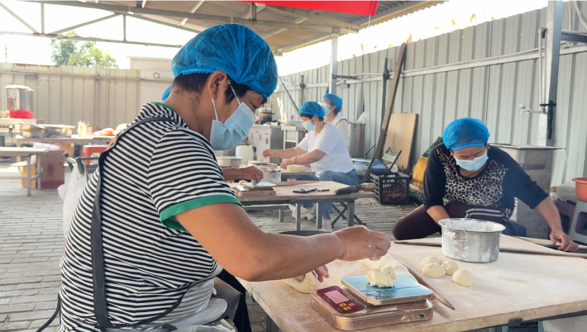 “我跟老人们说,只要在家闲着没事儿,都可以来加入咱村的烙馍队。”村民做的手工烙馍、馒头打开销路后,周根灿动员更多老人参与进来,尤其是独居老人,走出家门融入大集体后状态明显好多了。目前,老年烙馍队约有60人,忙起来每人每天能挣八九十块钱。