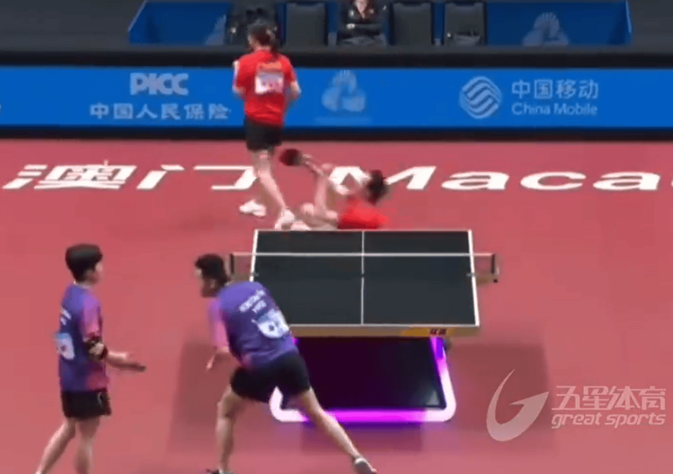 虎扑11月11日讯2025全运会乒乓球混双1/4决赛,总比分3-1之后,徐海东倒地庆祝之后才发现比赛还没结束。最终辽宁队徐海东/陈幸同4-1战胜香港组合黄镇廷/杜凯琹,晋级混双半决赛。