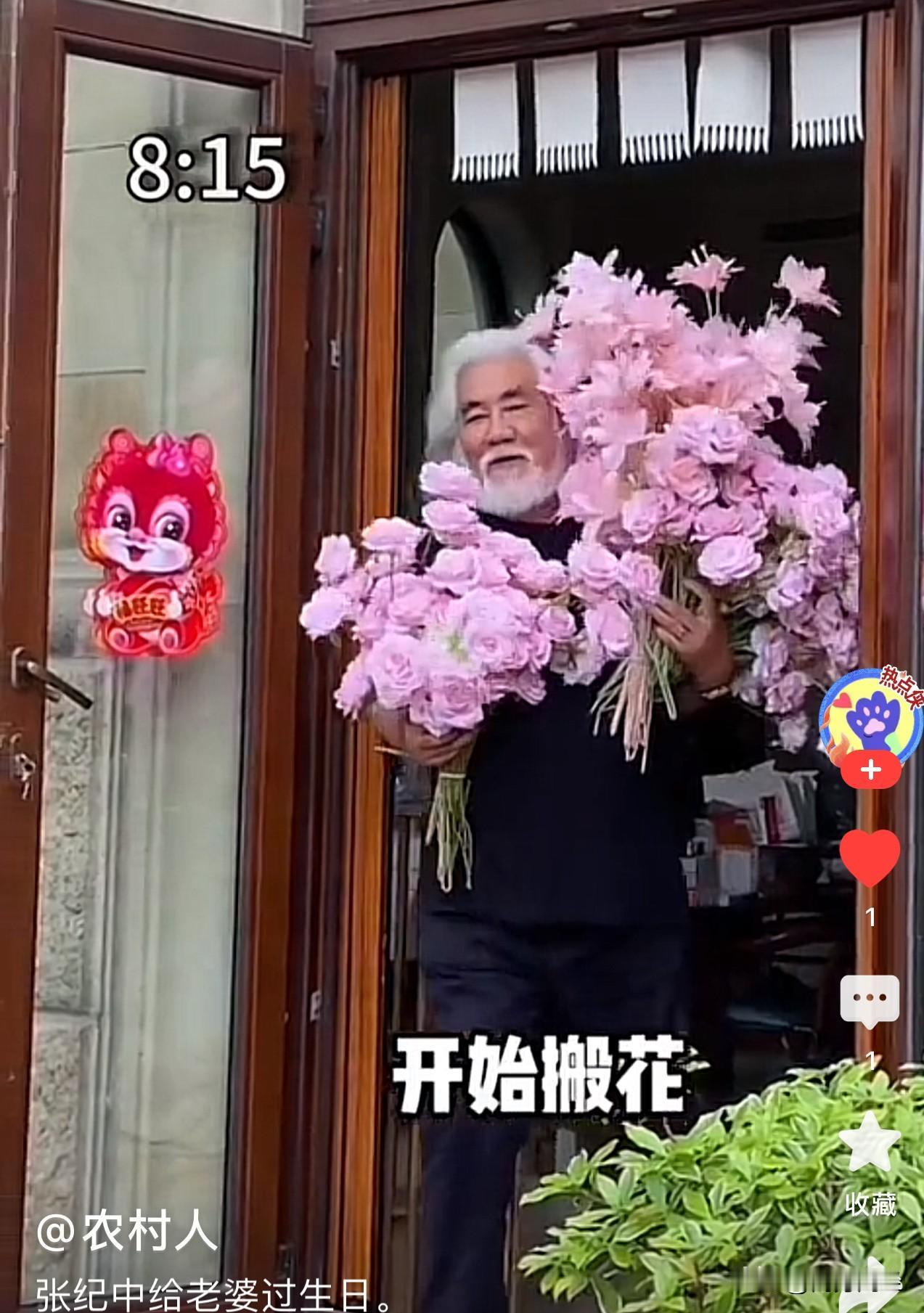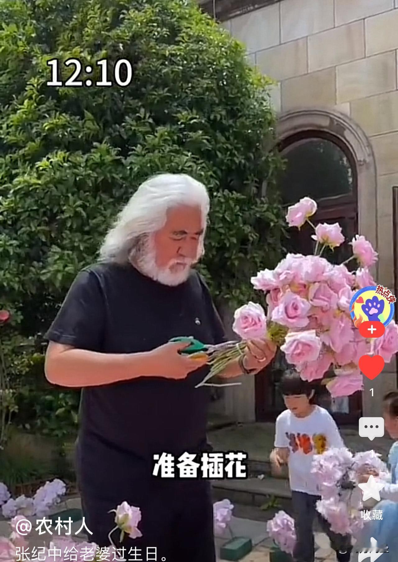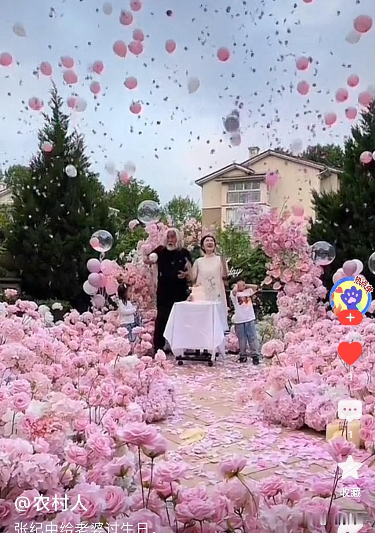 张纪中对杜星霖是真宠啊,杜星霖嫁给张纪中以后,当真过上了要风得风,要雨得雨的好日子。 张纪中是真的拿钱砸人,这满屏的玫瑰花何止九千九百九十九朵,十个九千九也搞不定。 张纪中为娇妻杜星霖庆生,现场画面极尽浪漫与奢华。他们的庭院被布置成了粉色的花海,数以万计的粉色玫瑰铺满每一个角落,宛如童话世界。精心准备的蛋糕、摇曳的烛光,无不透露着这位73岁制片人的用心。 然而,在这片为妻子打造的梦幻景象中,张导自己却仿佛成了背景。他满头标志性的银白长发与胡须,全身黑色的衣服与眼前娇艳的粉色形成了强烈反差。网友们关注的焦点也纷纷落在了这“反差萌”上:“虽然画面很浪漫,但老爷子站在这花海里,总觉得像是误入仙境的武侠高人,有点可爱的违和感。” 也有人笑称:“这满园的温柔,也盖不住张导那一身叱咤江湖的霸气。” 尽管张纪中本人在温馨场景中似乎“被忽略”,甚至因年龄差被戏称为“老头”,但他倾力为爱人营造浪漫的心意,却让这份看似违和的画面,透露出一种只属于他们的、跨越年龄的深情与默契。张纪中