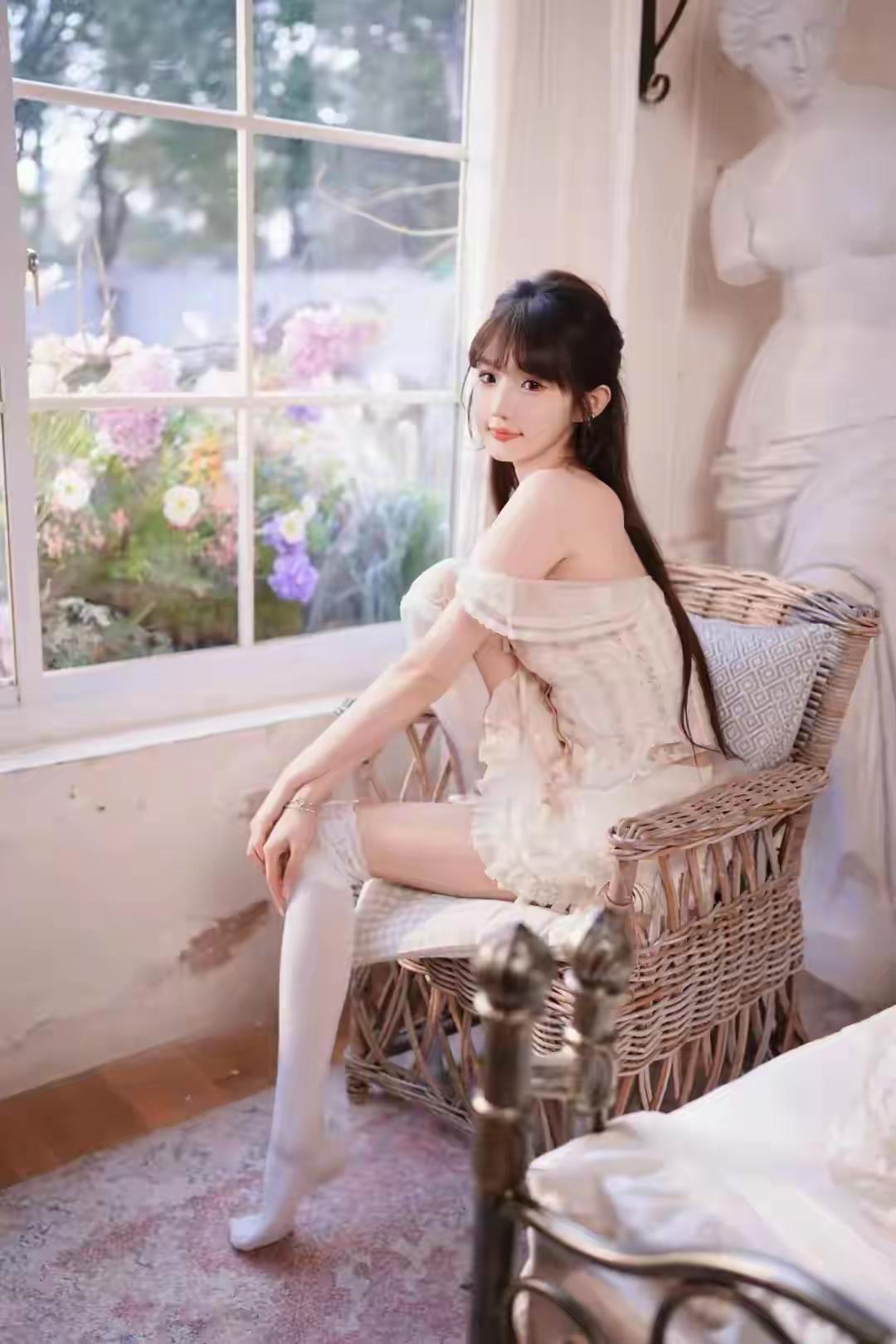 复古少女风,优雅坐椅上,白裙飘飘,花影摇曳。有气质的穿搭是怎么样的 古代小姐姐的