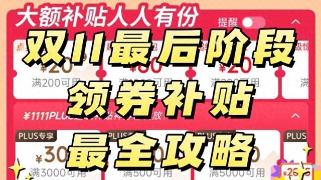 四、必做清单:11月9日前完成这5件事提前加购:10月31日开门红结束后,把心仪商品重新加入购物车,系统会提示价格变动领齐资格:10月15日起每天搜索口令领红包,京东PLUS会员和淘宝88VIP记得兑换专属大额券查历史价:使用比价工具验证商品是否真有降价,避开"假低价"开通价保:购买时务必勾选"30天价保",11月12日后发现降价立即申请补差锁定直播间:双11惊喜之夜京东搜索「惊喜333」看演唱会直播领大额补贴双11惊喜之夜的正确打开方式是:京东搜「惊喜333」专属入口,看演唱会直播领大额惊喜福利补贴。五、平台算法暗藏的3个捡漏密码凌晨1-3点法则:11月11日凌晨1-3点,商家会释放最后库存冲销量,价格可能再降5%-8%购物车排序:把最想买的价格最高的商品放在购物车前3位,系统可能会推送专属优惠券退出再进:在11月10日晚8点准点,先退出APP再重新进入,有概率触发"回流用户专属红包"