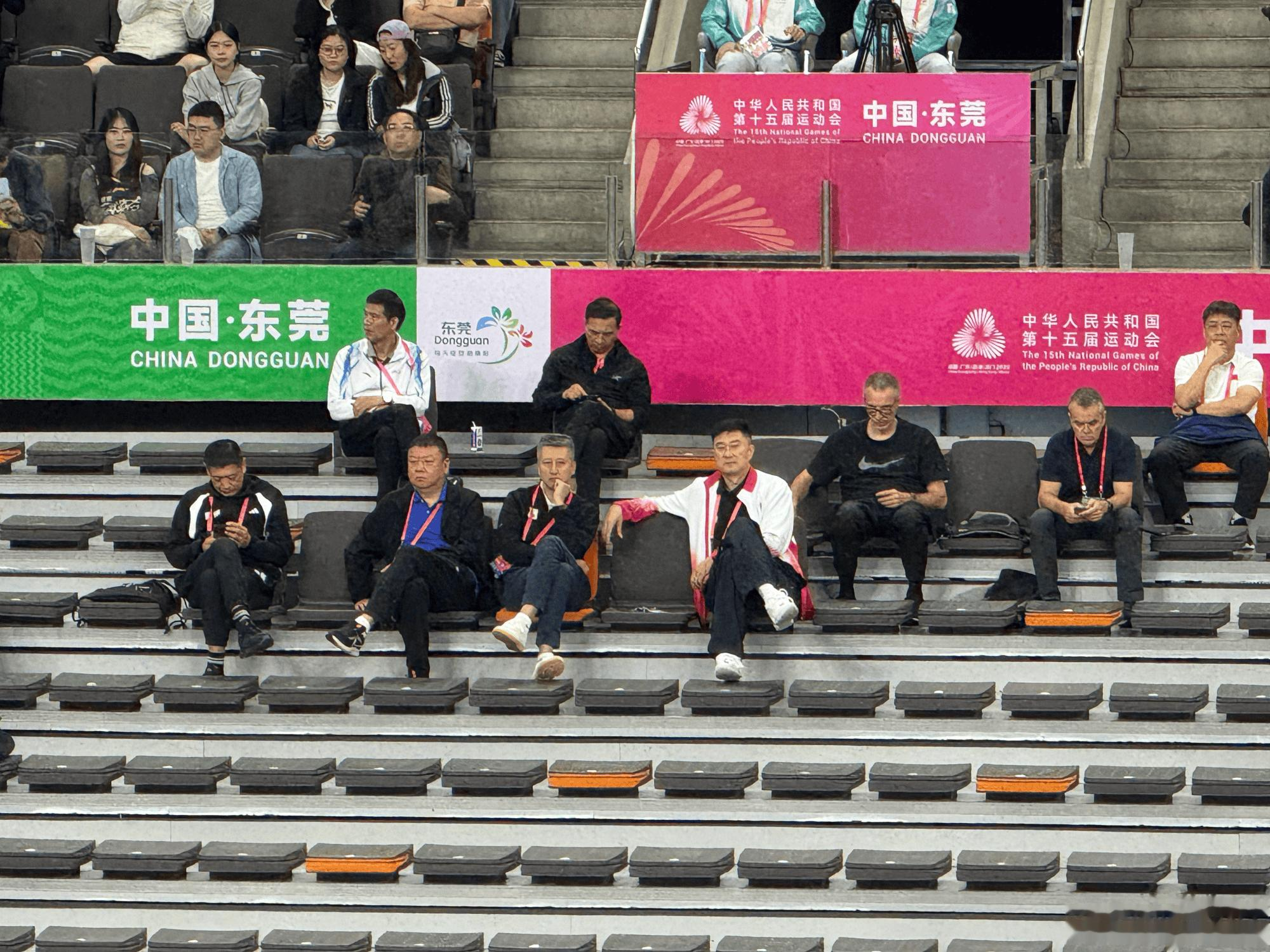 解说员哈秋说更新社媒晒照,中国男篮主教练郭士强和广东队教练杜锋一起在现场观赛。