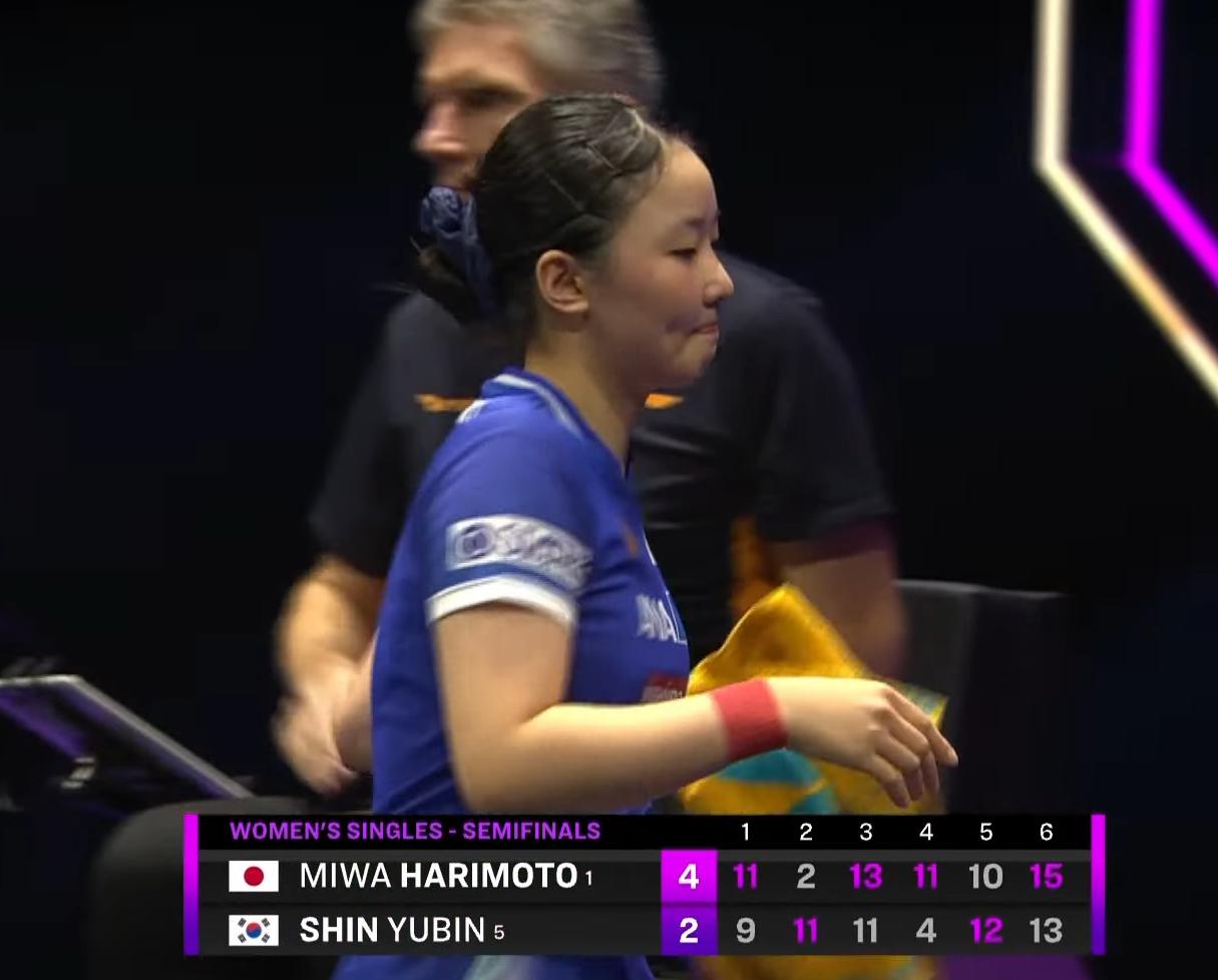 张本美和终于像哥哥那样,开始吼了! 但她是转身低头吼, 给自己打气, 而不是嚣张朝对手呐喊。 申裕斌利用大角度变形, 连赢7个球。 张本美和通过快攻, 和蛮横的正手, 连赢8个球。 两人各有各的优势。 但是张本美和更霸气, 更积极主动, 申裕斌比较乖顺, 美和最后4:2赢了。