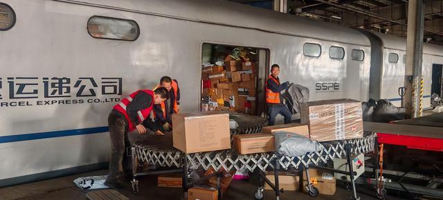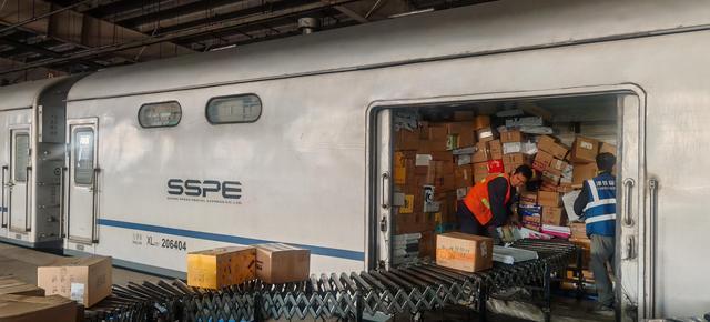 今天上午,伴随着嘹亮的机车鸣笛,满载10万件“双11”快件的X104次特快货物班列驶入国铁北京局北京铁路物流中心黄村货场。站台之上,传送带与叉车协同作业,装卸人员快速完成卸车、分拣,货物随即装入等候的短驳车辆,朝着北京各大快递分拨中心疾驰而去——这趟从广州石龙始发的班列,仅用20几个小时便完成南北穿越,让远在广东的“双11”货品次日抵京。