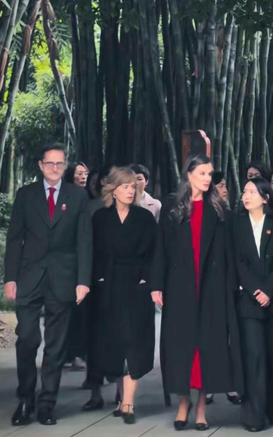 11月11日,西班牙王后在四川游逛了,有相关工作人员陪同,有一位穿白色衬衫身材高