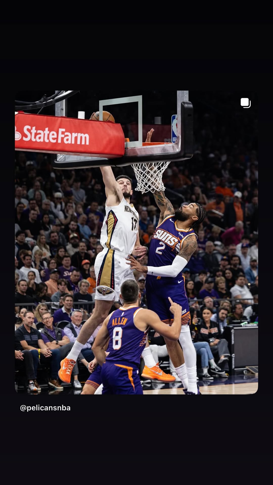 虎扑11月11日讯鹈鹕球员卡洛-马特科维奇更新个人社媒,晒出个人赛场扣篮瞬间照片。