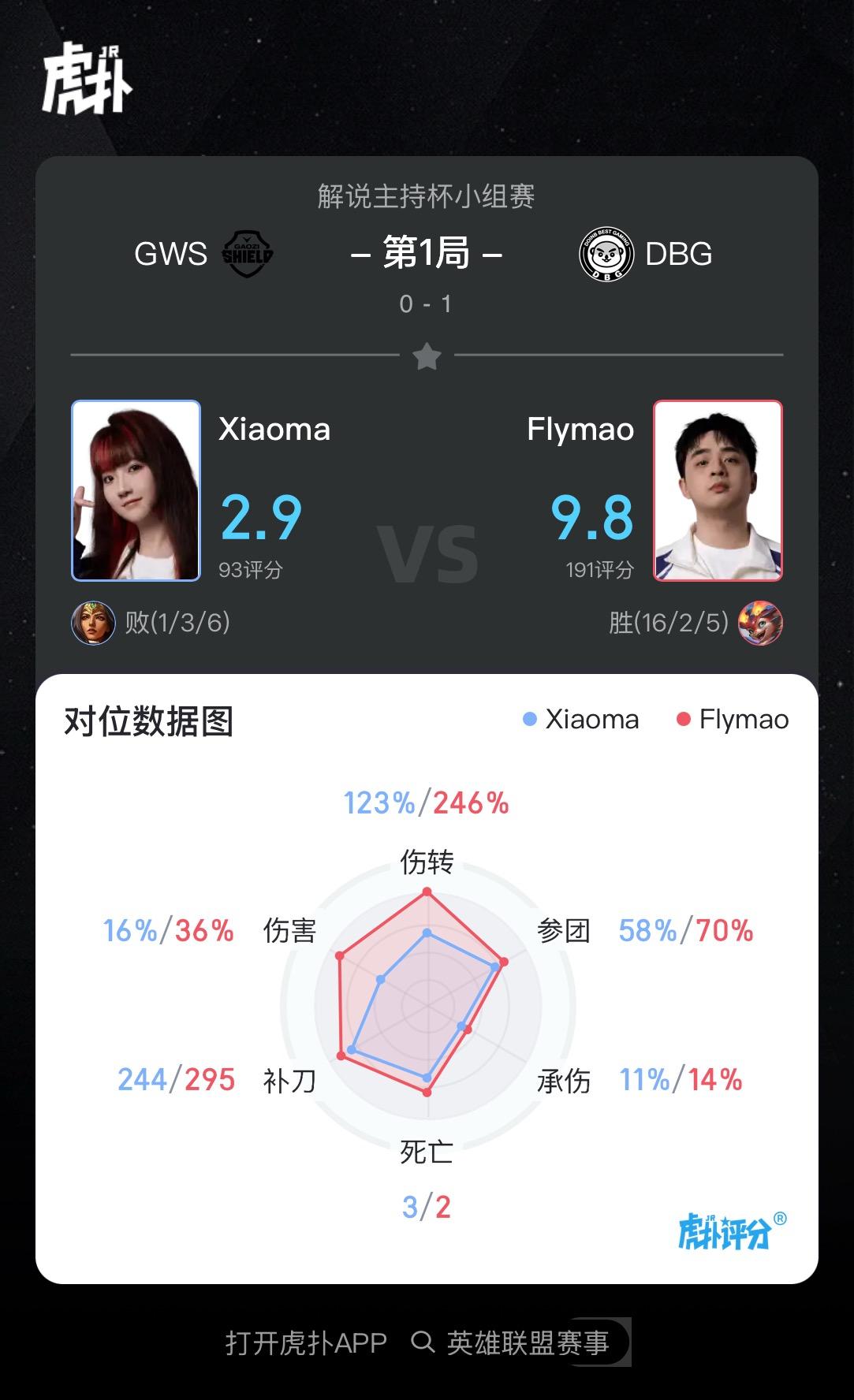毛毛使用小火龙打出16/2/5战绩,斩获GWS对阵DBG第一局MVP
