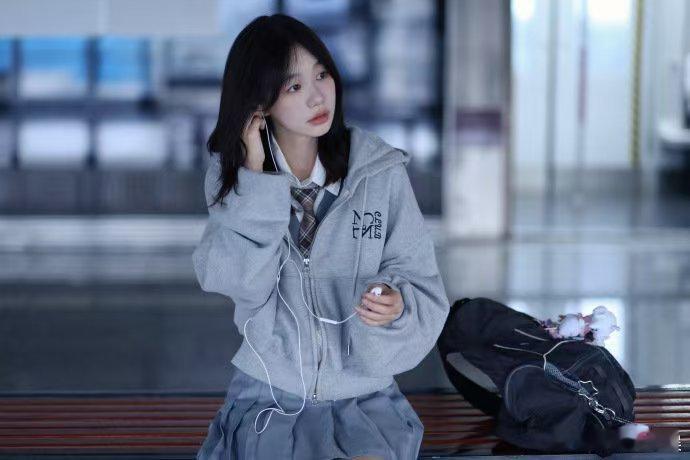 徐梦洁穿着校服走来,水灵灵的模样太有代入感,像身边的同学,一起滑滑板聊校园事,现偶剧本请量身定做!