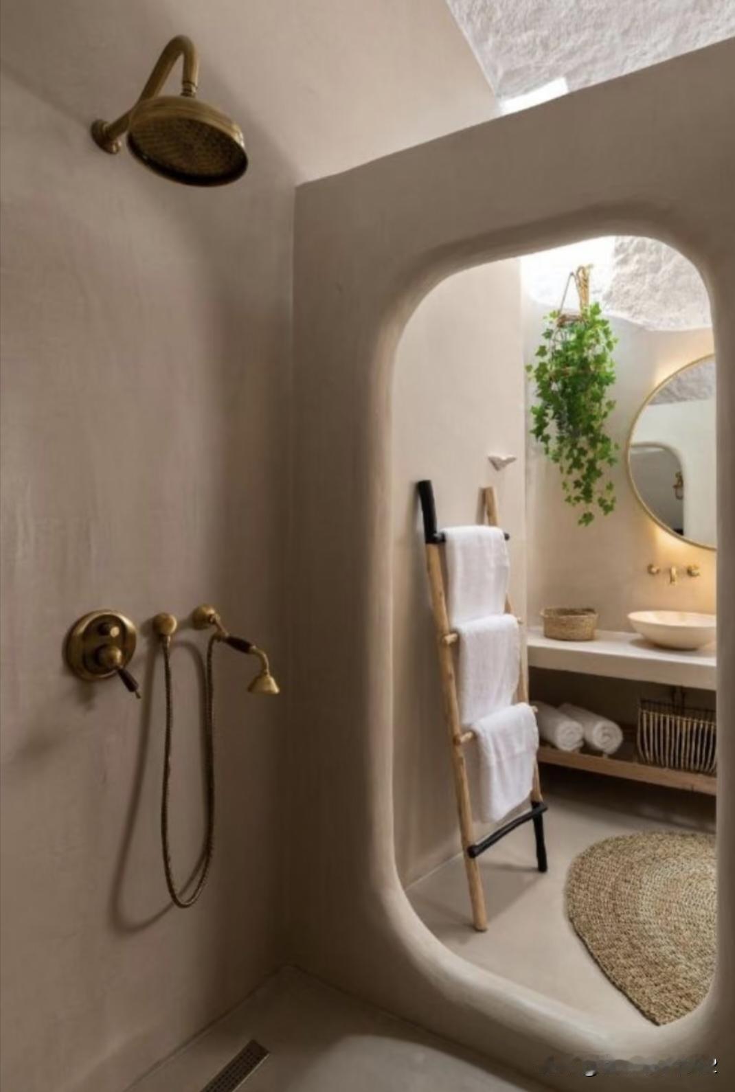 说好的卫生间就装水泥DIY风格,但墙面和地面刷完自流平漆以后,我想起了以前乡下的