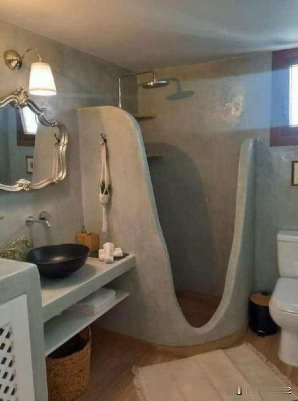 说好的卫生间就装水泥DIY风格,但墙面和地面刷完自流平漆以后,我想起了以前乡下的土茅厕风格了。这是翻车了吗?
