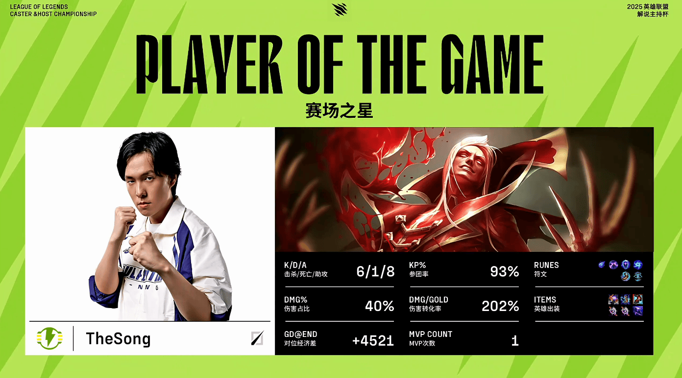 TheSong吸血鬼打出6-1-8战绩,斩获SHB对阵WEB第一局MVP