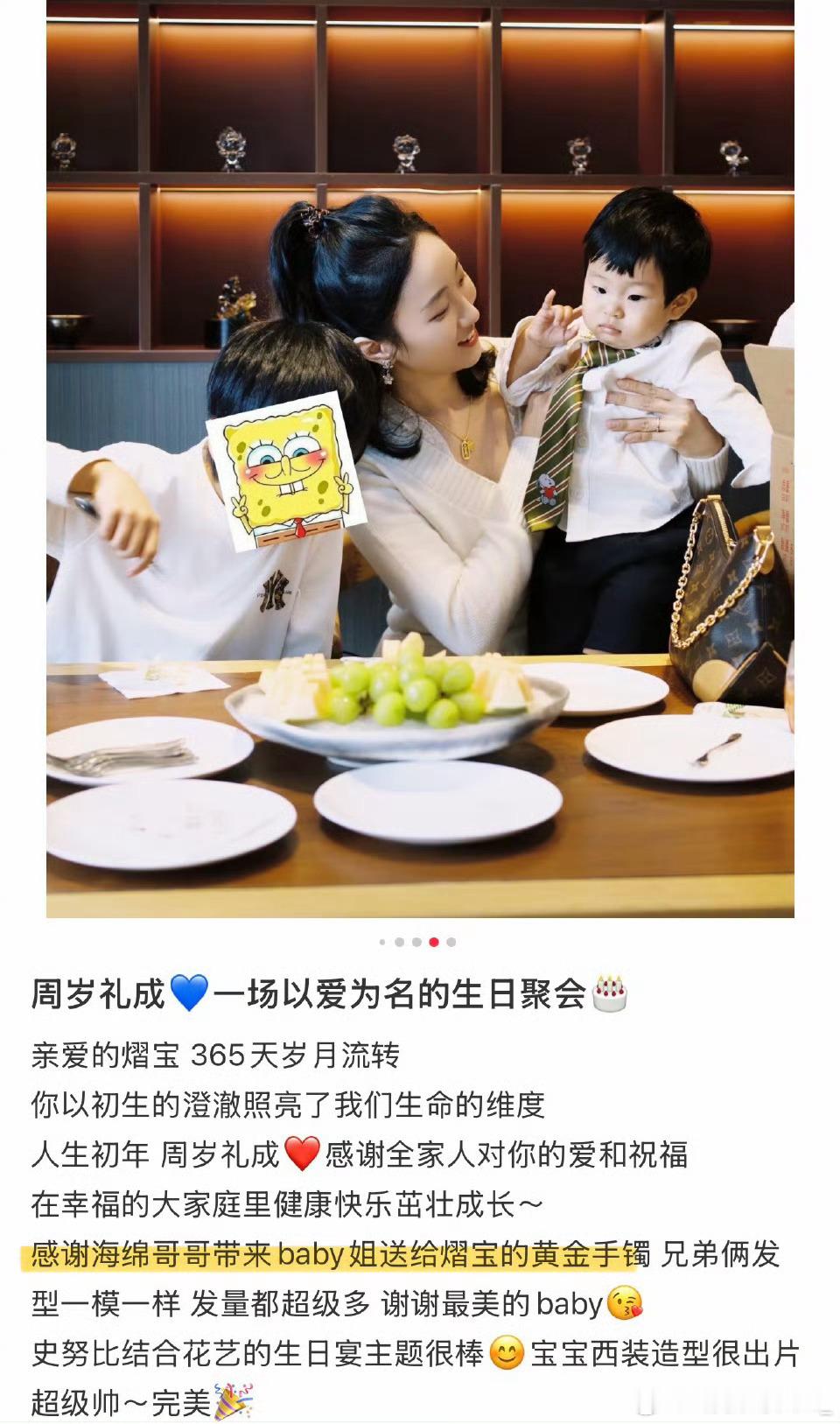 杨颖(baby)太有心了!黄晓明舅舅的儿子,也就是黄晓明表弟家的儿子1周岁了