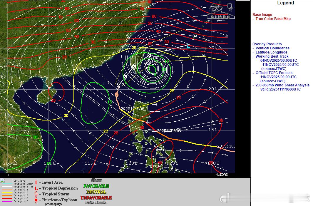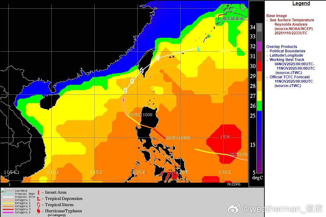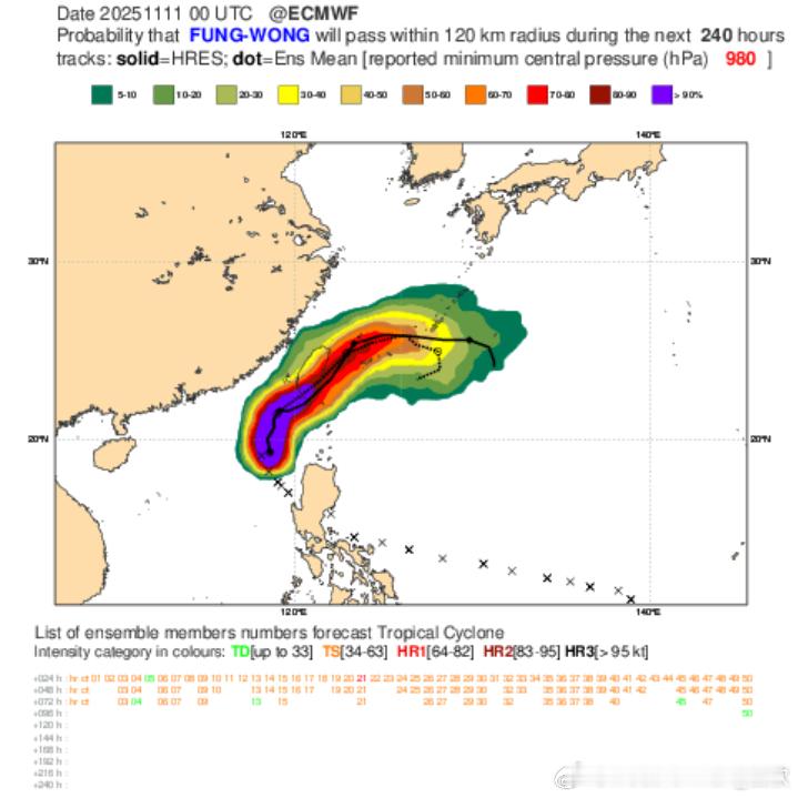 从目前的海温和垂直风切变条件看,台湾南部相对更好。因此台风凤凰前进的方向,除了考虑引导气流的大方向,也要考虑环境因素的生消发展——台风前进其实也可以认为是前方对流发展,后侧对流减弱,就像是造人浪。人浪不是人往前跑,而是前面的人站起来,后面的人坐下。如果前面的人跳得更高,前方对流更强,就是发展增强,反之减弱。最新数值预报对路径继续有所南调,大概率还是会登陆台湾南部,但不排除小概率从台湾南部近海擦过的可能性。