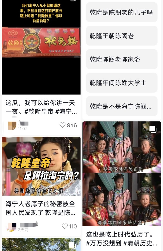 “乾隆是浙江海宁陈阁老之子”的说法在网上流传