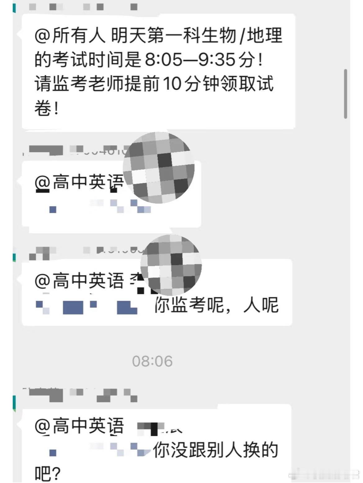 今天学校期中考试,这也是进入初中第一次考试,所以学生跟老师都很重视,周六老师在群