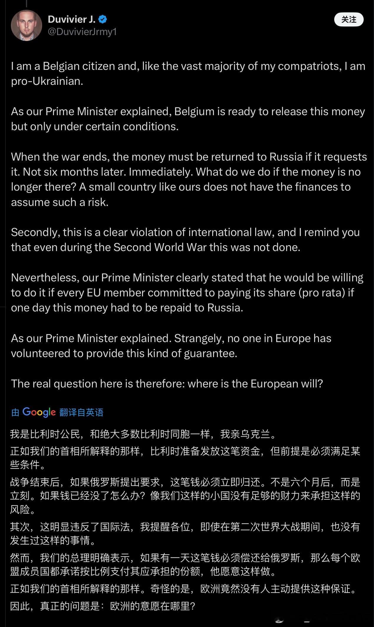 欧盟塑料姐妹们个个都长了一千八百个心眼子。欧盟想让比利时同意没收俄罗斯资产,比利时说那也不是不行,但若未来战争结束俄罗斯要钱,那姐妹们不能只推我一个出去还债,大家都要还钱。然后。就没有然后了。