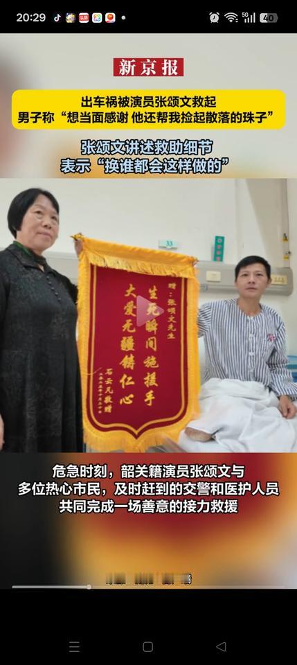这下瞒不住了!10月30号凌晨1点,张颂文看到有路人骑电动车摔倒,一动不动。于是立刻下车返回,去帮助受伤的小伙。 被帮助的小伙回忆称:当时张颂文和几个好心人帮忙把电动车抬起来,还把自己丢掉的东西都一一捡起来放在他的衣服里,说话很温和,没有一点架子。 当救护车赶到后,张颂文其实已经被认出来了,大家纷纷说,这不是“强哥”吗![捂脸]他只是笑着说:这是一件小事,是自己应该做的,便扬长而去。 真正的善意体现在生活中的每一个小细节,为张颂文老师点赞[玫瑰][玫瑰]