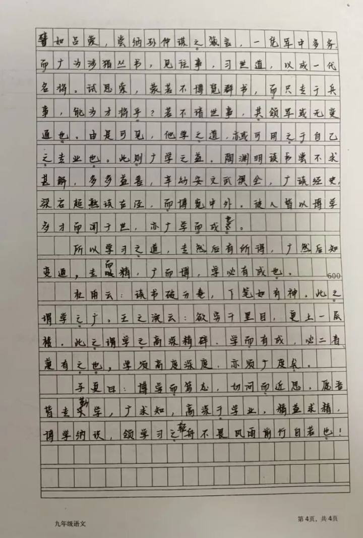 康泽妈妈也给记者发来了一张他写的作文的照片。这篇题为《学贵有专,亦贵于广》的作文,从字迹、文笔、文章逻辑,都非常优秀。