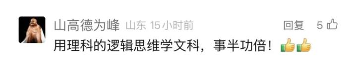 有网友说:妥妥的优秀的女生,女生学数学很难确实不一定了,我信;还有网友说:用理科的逻辑思维学文科,事半功倍!