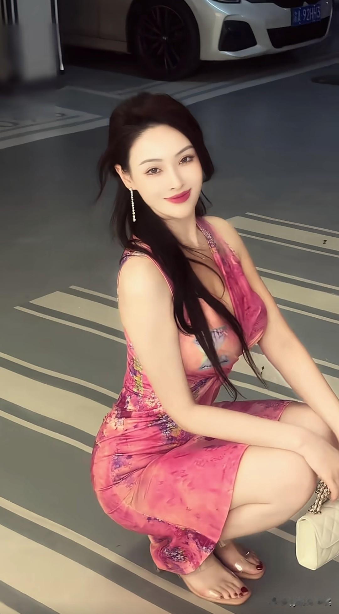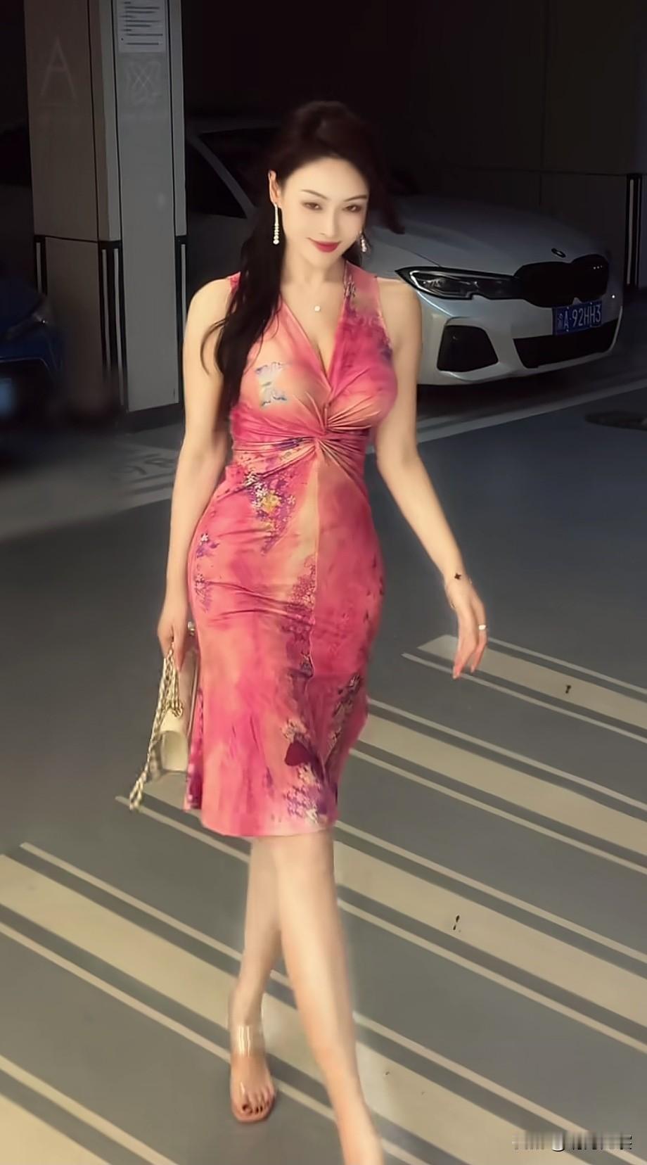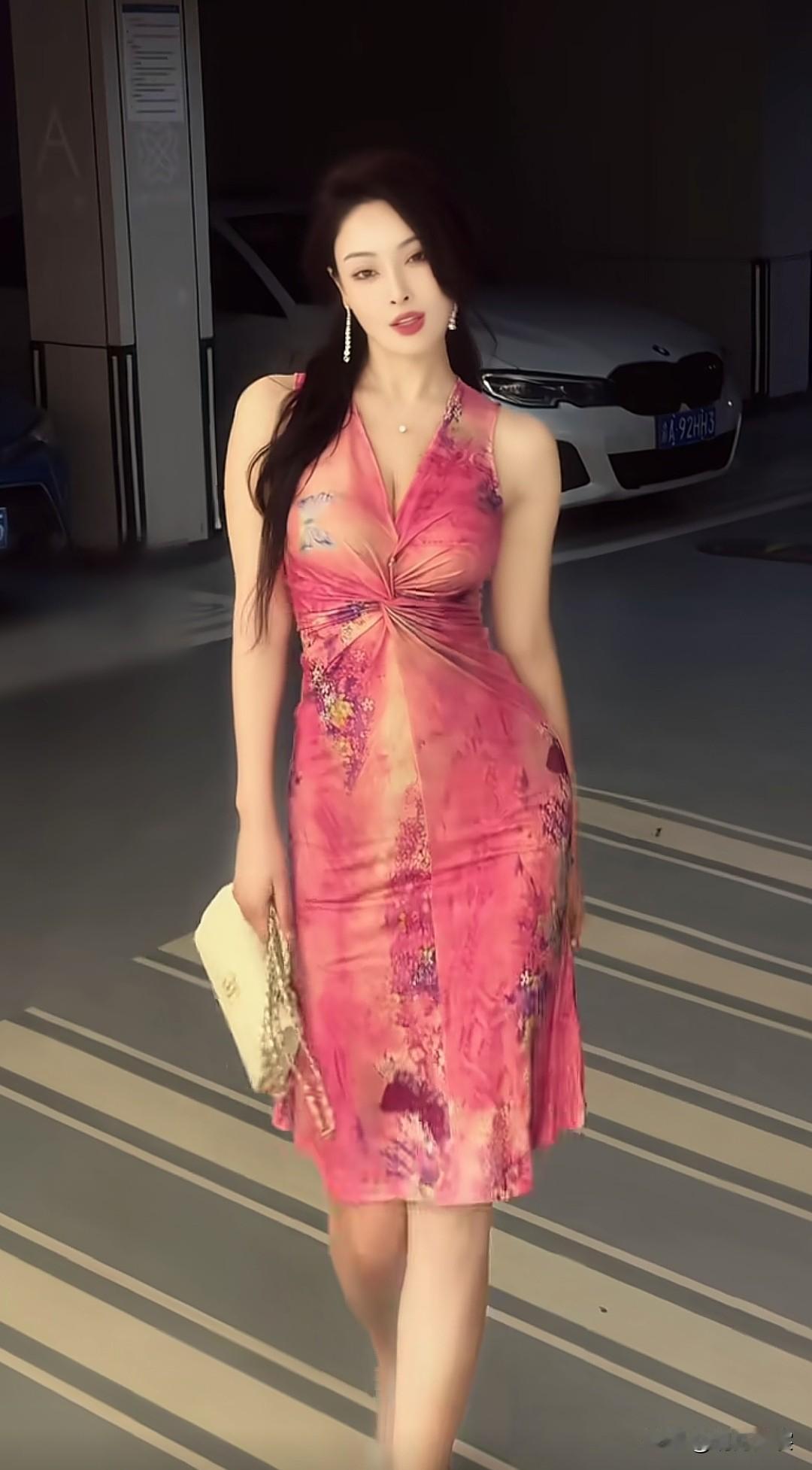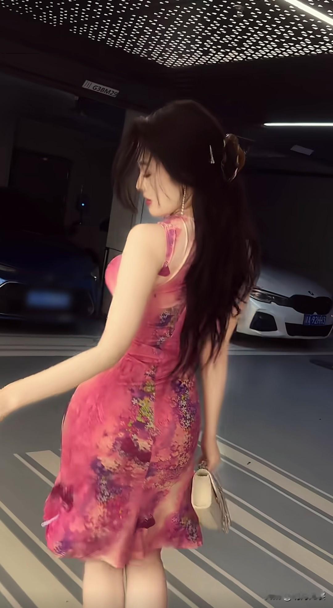 地下车库的惊艳随拍,美女到哪儿都有T台粉红色的回忆 街拍美女 好身材性感女神