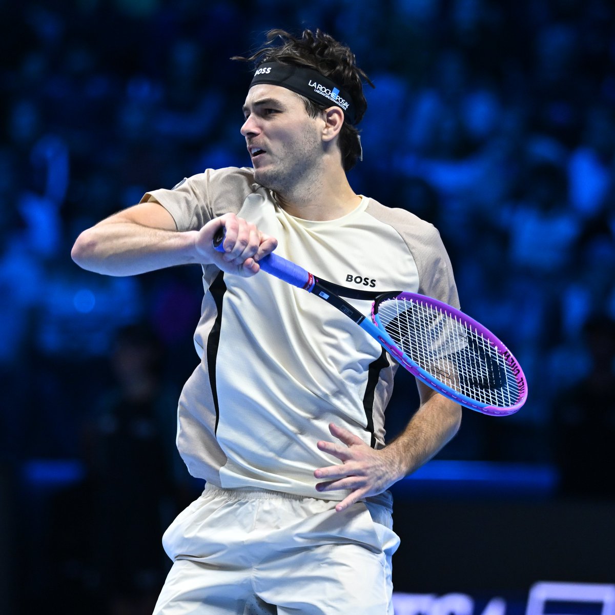 ATPTour(网球)报道。钢铁般的神经⛓泰勒·弗里茨以7-6(2)的比分险胜卡洛斯·阿尔卡拉斯,拿下紧张的首盘。#NittoATPFinals