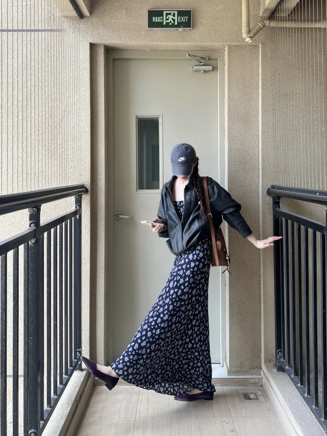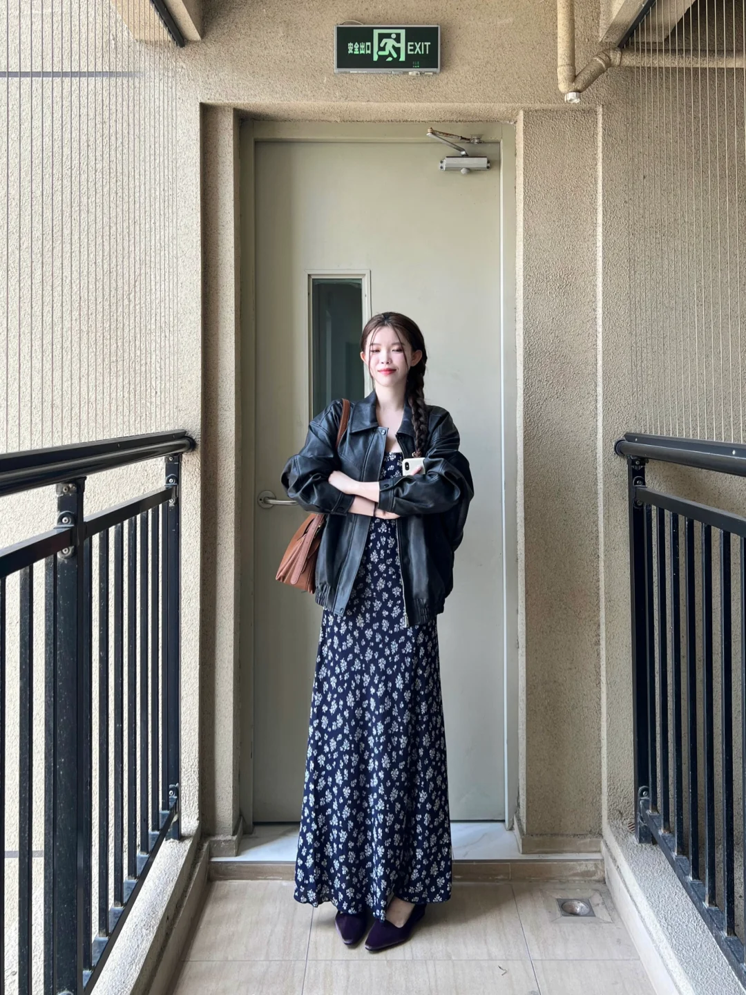 男友风皮衣➕碎花裙➕单鞋➕斜挎包!