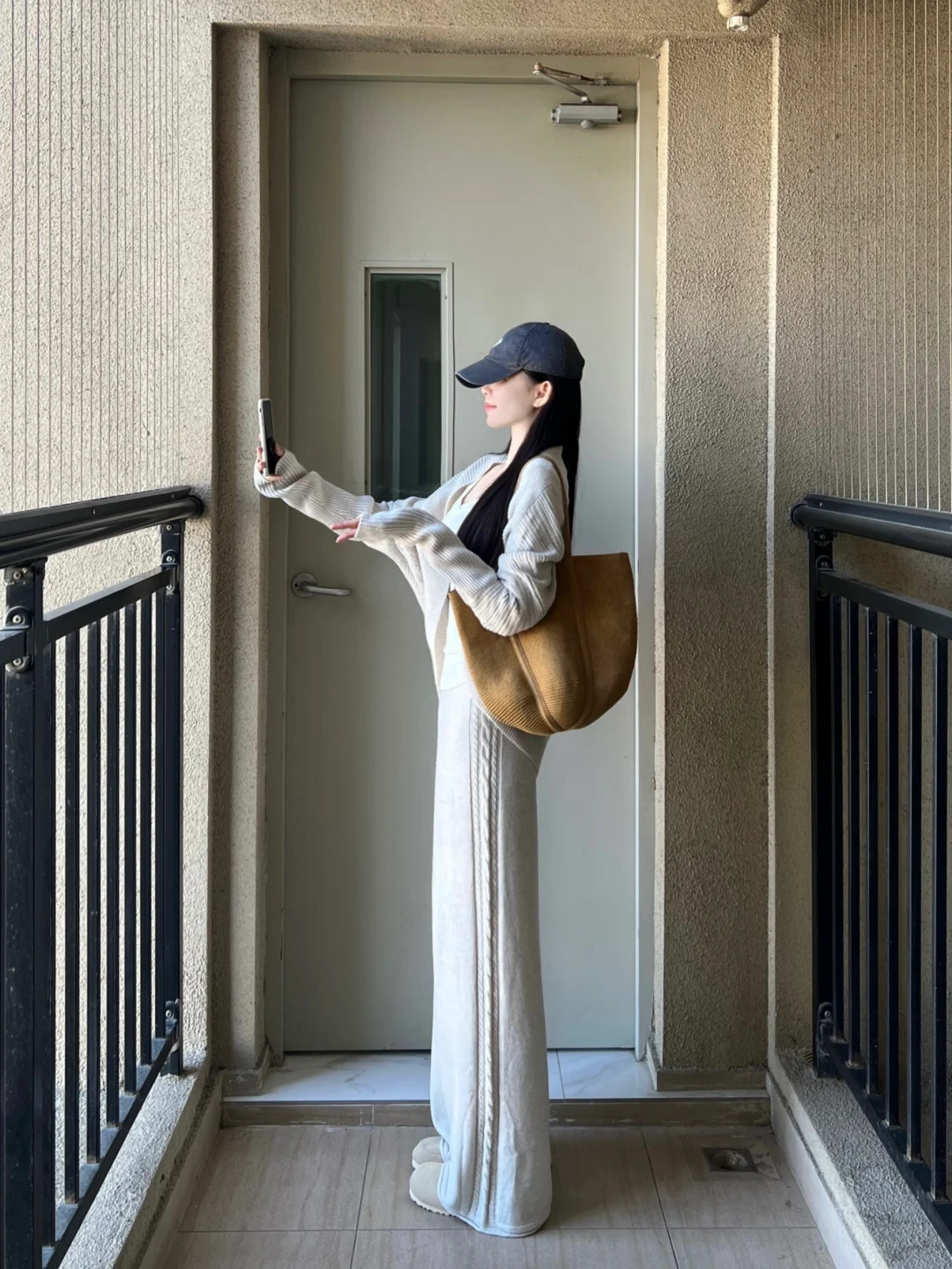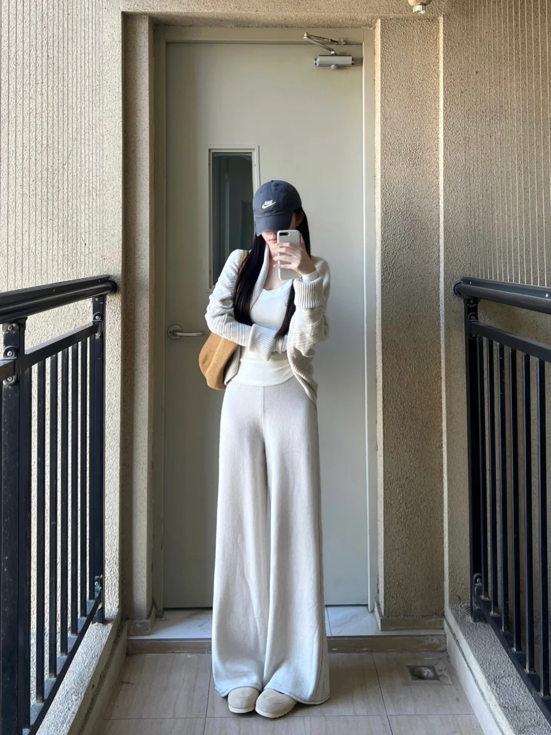 通勤穿搭 日常穿搭 针织套装 显瘦穿搭 浅色系穿搭