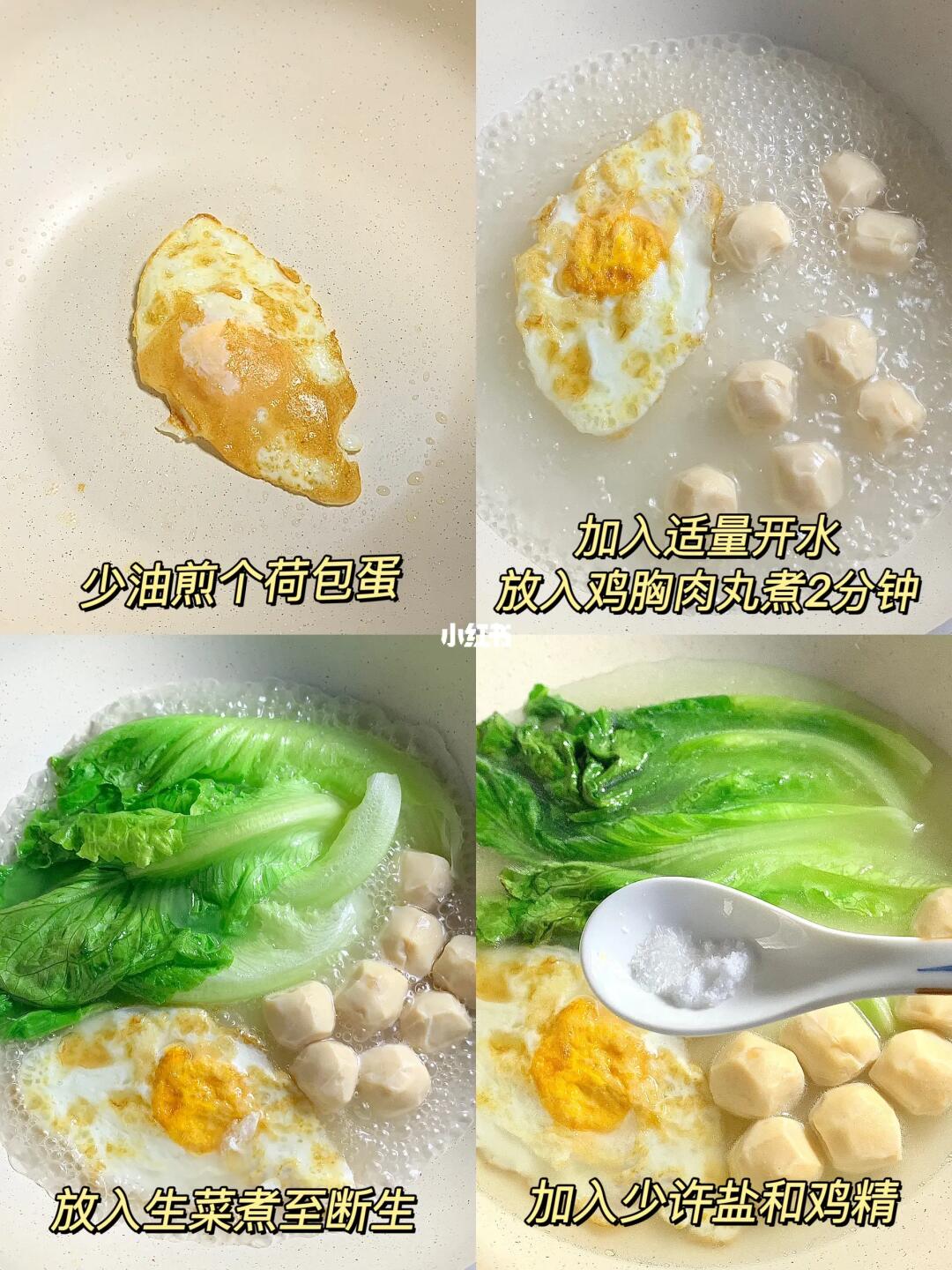 ✨分享鸡胸肉丸生菜汤!巨好吃!汤鲜味美!低脂低卡!姐妹们一定要试试~ [彩虹R]食材:鸡胸肉丸 生菜 鸡蛋 [种草R]做法:少许油煎1个荷包蛋 加入适量开水 放入鸡胸肉丸煮3分钟 加入生菜煮至断生 少许盐和鸡精调味即可✅简单易做 新手小白也能轻松搞定 真心推荐给所有减脂期姐妹们!