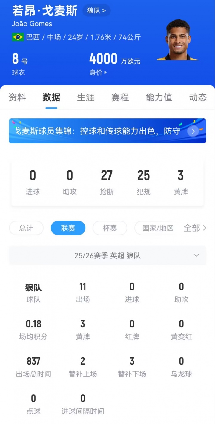 森林的安德森和水晶宫的沃顿将在赛季末成为转会市场的抢手货,而《邮报》了解到,曼联也在关注狼队中场若昂·戈麦斯。