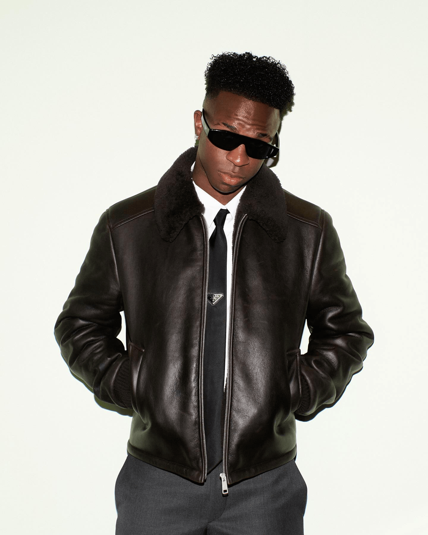 皇马前锋维尼修斯在社媒发布了两张他身穿pradaEyewear系列墨镜的照片,他也是该系列的合作伙伴。