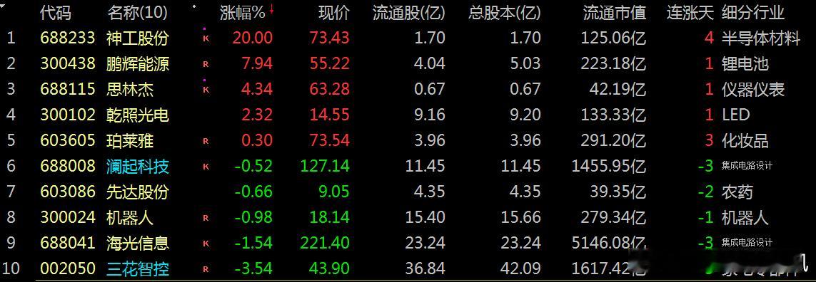 【财富晚茶】十大利好(11.11):追寻沪深北市十大利好信息的股票导语:作者系《网易号》优质财经领域创作者。曾经原创作者和知名网易号旅游领域创作者。大跨度行业等的写作,颇受网友喜爱。作品发表于 2025.11.11.19:48 优雅端庄晚风。编者的话:追寻市场:蛛丝马迹动态趋势。今天主题:【财富晚茶】十大利好(11.10):追寻沪深北市十大利好信息的股票。最新市场:新鲜出炉:2025.11.11.19:48 十大利好股票参考。偏重其中:个人复盘、机构分析、龙虎榜数据、高成长性潜力。综合筛选:涵盖半导体、锂电池、机器人等领域。兼顾短期:热点长期估值。每个股票:附简要利好原因。一、主力资金:市场表现前三佳股票神工股份 (688233)鹏辉能源 (300438)思林杰(688115)二、主力资金:十大利好信息的股票1、神工股份 (688233)核心逻辑:全球大直径硅材料第一梯队企业。晚间点评:新增100项专利,2025年上半年营收同比增长66.53%,净利润同比增长925.55%。市场资金对半导体板块的关注度较高,游资参与活跃。2、三花智控(002050)核心逻辑:全球制冷配件龙头。晚间点评:全球最大制冷控制元器件和全球领先汽车空调及热管理系统控制部件制造商。电子膨胀阀、四通换向阀、微通道换热器、新能源车热管理集成组件等产品市占率全球第一,已布局仿生机器人机电执行器业务。3、珀莱雅 (603605)核心逻辑:美妆赛道引领者。晚间点评:上半年营收达53.6亿元,在天猫排名靠前,是双十一期间表现突出的个股之一。4、鹏辉能源 (300438)核心逻辑:储能与动力电池龙头。晚间点评:2024年攻克固态电池核心技术,2025年聚焦大圆柱电芯量产。技术壁垒支撑其发展,且储能需求爆发,公司获海外大额订单。5、机器人 (300024)核心逻辑:工业机器人龙头。晚间点评:产能释放智能装备业务占比提升,智能制造政策支持叠加工业自动化需求上升。工业机器人产能释放,智能装备业务占比提升,尽管行业竞争影响毛利率,但仍是市场关注的热点,主力资金净流入5.58亿元。6、乾照光电 (300102)核心逻辑:国内四元系红龙头。晚间点评:黄光LED芯片产销量最大的企业,包括商业航天、砷化镓电池。三季报增长:是工信部政策支持人工智能、量子科技等前沿领域的中试平台间。7、先达股份(603086)核心逻辑:农药行业细分龙头。晚间点评:全球烯草酮原药的主要供应商,产能达9100吨,占全球总产能的30%以上,位居行业第一。构建以喹草酮等为核心矩阵。其中喹草酮是全球唯一用于高粱田苗后防除禾本科杂草的创制除草剂。8、海光信息 (688041)核心逻辑:国产x86架构DCU协处理器性能达英伟达A100的80%-90%。晚间点评:适配千亿参数大模型训练。9、思林杰(688115)核心逻辑:军工板块。晚间点评:政策驱动板块:“十四五”收官年装备列装加速,卫星互联网、空间算力概念受“新质生产力”政策推动,获资金青睐。10、澜起科技 (688008)核心逻辑:全球内存接口芯片标准制定参与者。晚间点评:DDR5技术路线保持全球领先优势。风险提示1、部分科技板块亦或估值偏高需留意外部环境。2、美联储政策中美贸易摩擦内部经济不确定性。三、主力资金:其他利好信息的股票1、零售胖东来合作汇嘉时代(603101)核心逻辑:新疆区域零售龙头。晚间点评:深度布局新疆核心商业区。作为本土龙头形成独家区域流量壁垒。与胖东来合作的调改店(如北京路店)开业后表现亮眼,48小时销售额达469万元,同比激增275%。与新疆通航成立合资公司探索低空经济(如智慧物流场景)。2、中高端爽酒黄酒会稽山(601579)核心逻辑:作为黄酒行业的代表企业。晚间点评:聚焦兰亭系列等中高端产品,2025年中高端产品收入占比达63.7%,毛利率提升至55.5%。推出气泡黄酒、原浆鲜黄酒等创新产品,联合抖音顶流直播带货,2025年“爽酒”系列收入增长60.47%。四、 创作不易:优质网易财经作者投资投机迷茫之中:给予尽可能有帮助:资本市场风险自负。(优雅端庄晚风《网易号》财经领域创作者和原创作者 违者必究)