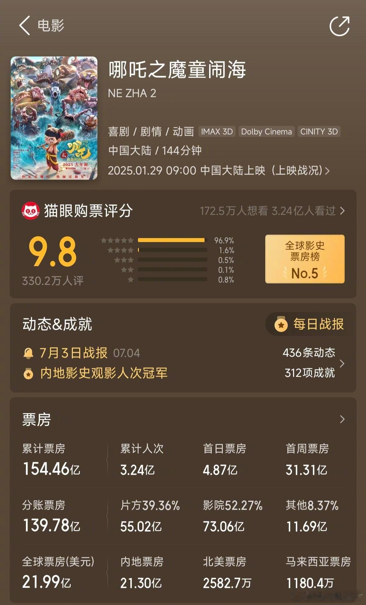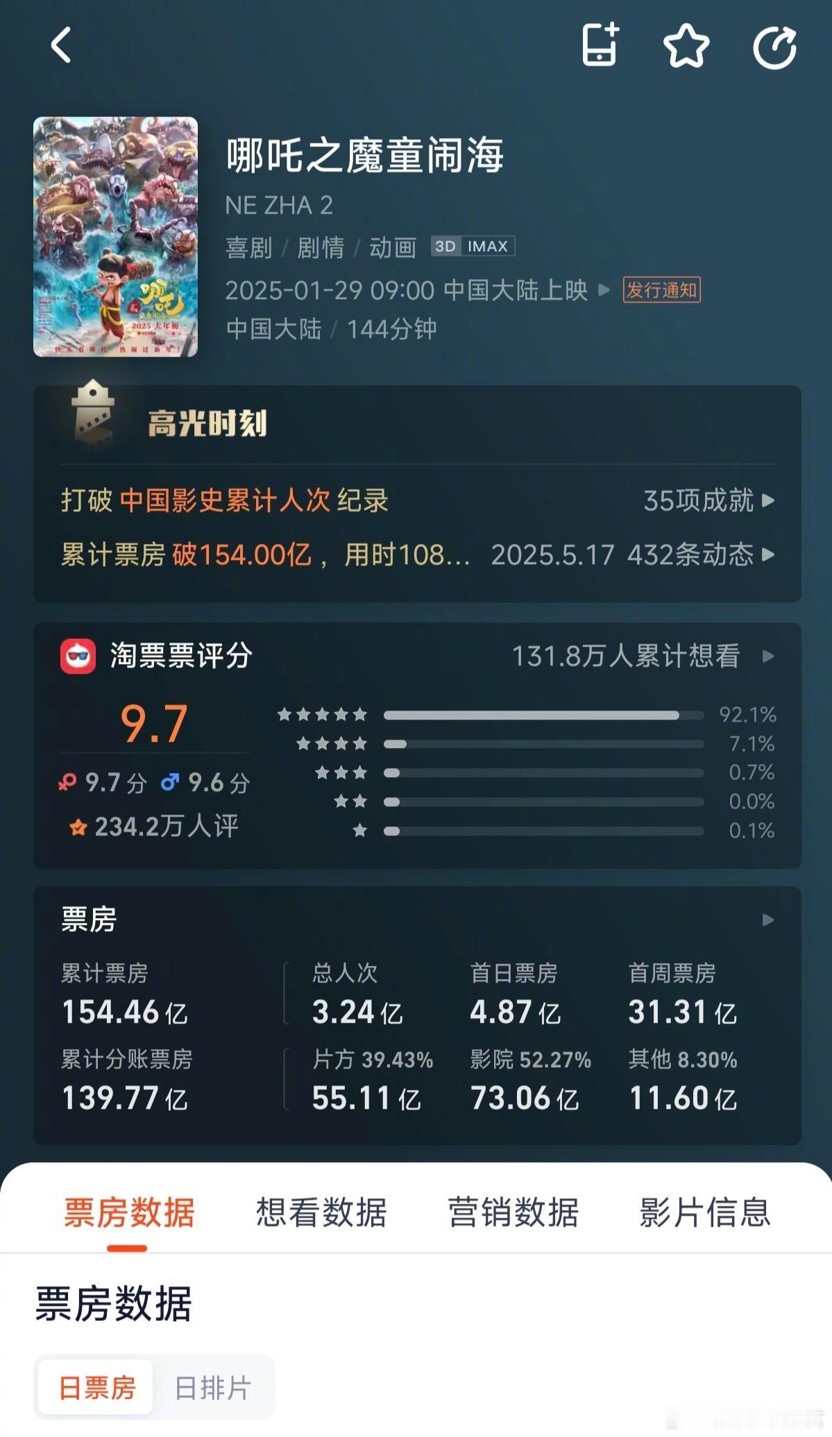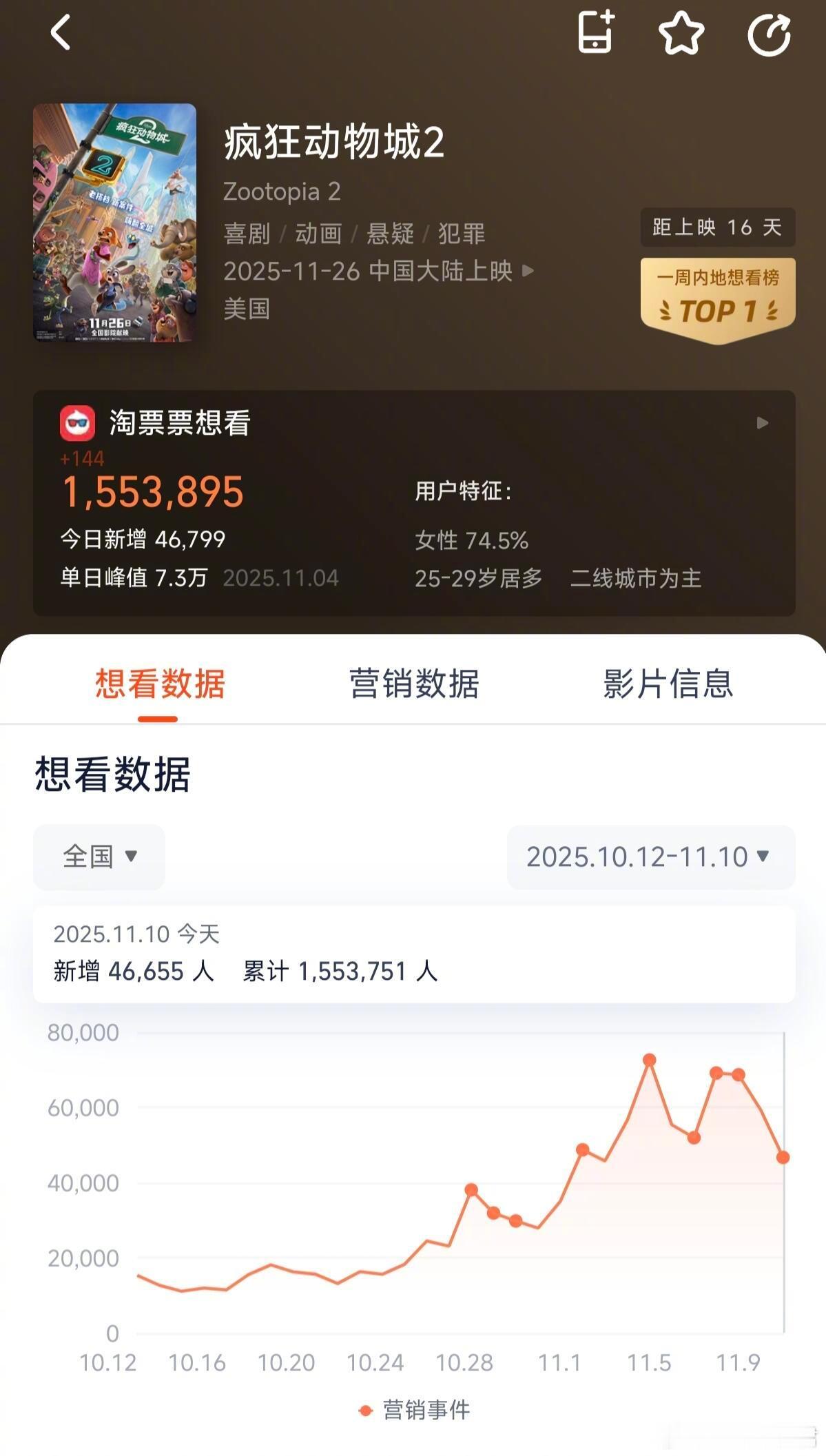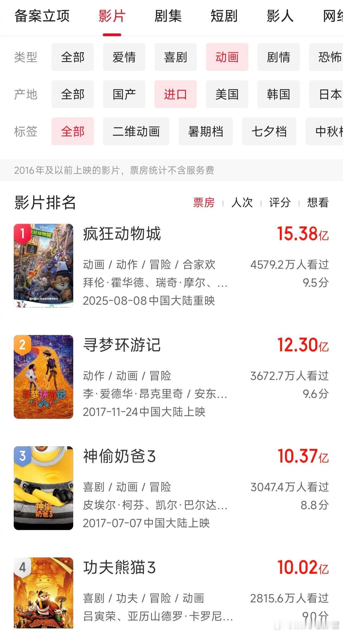 想看人数直逼哪吒,疯狂动物城2会破纪录吗雷报文章显示,截至昨晚发稿日19:00,《疯狂动物城2》在猫眼和淘票票的合计想看人数已突破300.6万人次,加速逼近票房154.46亿元的《哪吒之魔童闹海》(304.3万人次),且最终将无悬念超越。尽管映前想看人数仅能反映受众的初始关注度,与最终票房之间并非呈现绝对正相关关系。但还是能看出《疯狂动物城2》强大的IP影响力,大家觉得这部电影最终票房能到多少?能打破第一部保持10年的进口动画票房冠军的纪录吗?